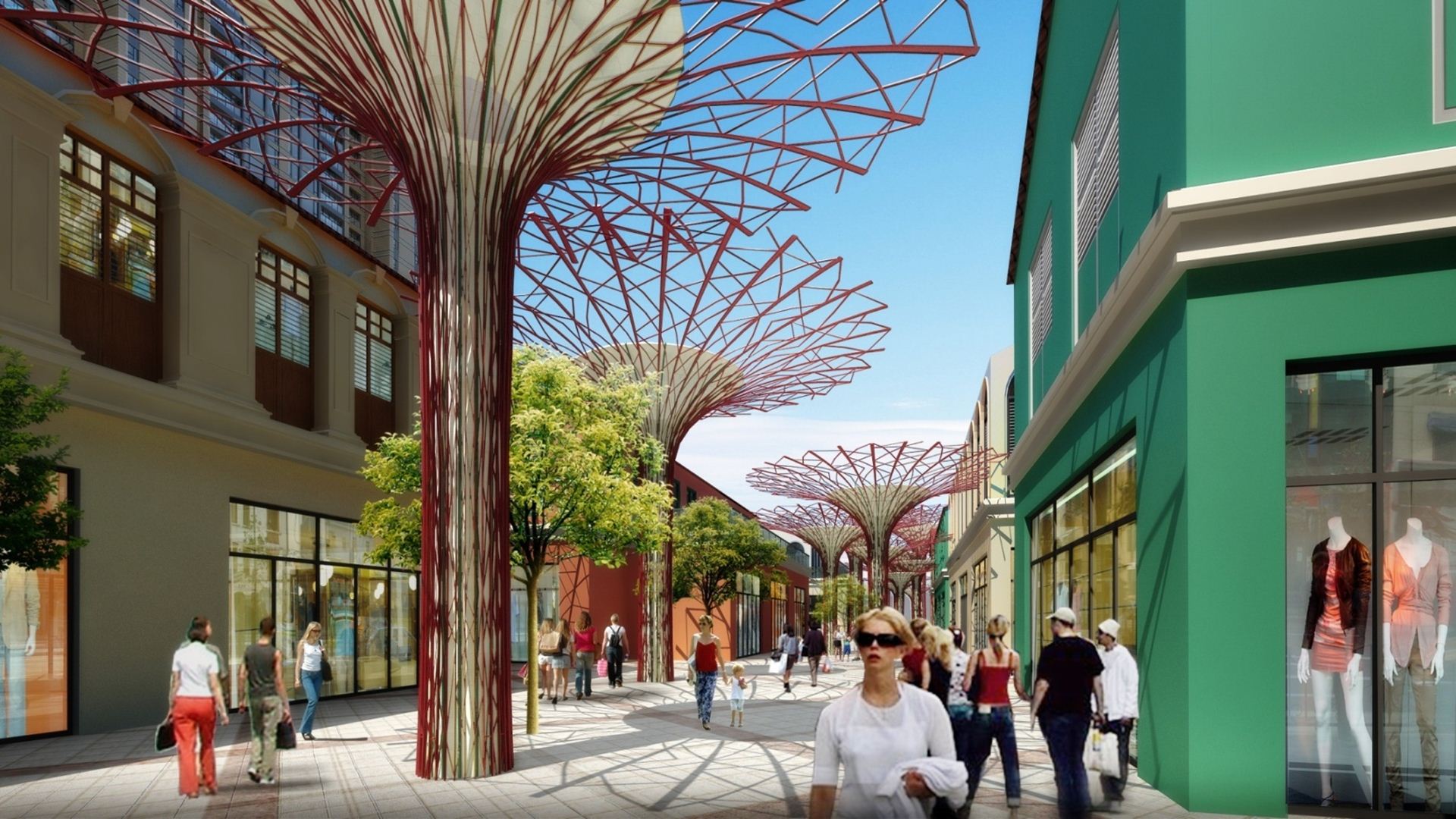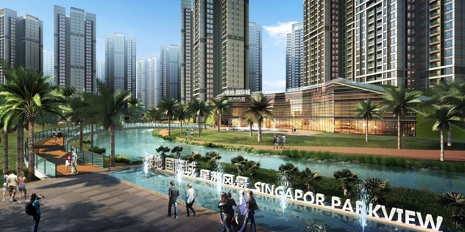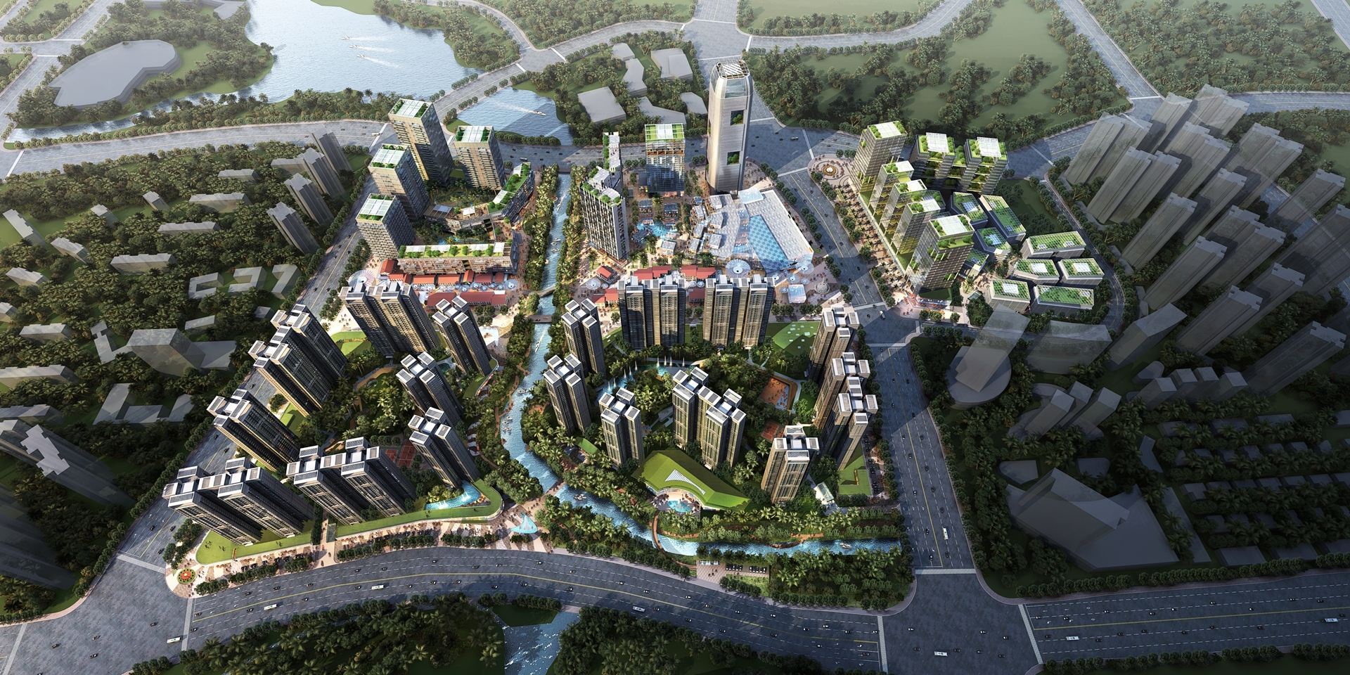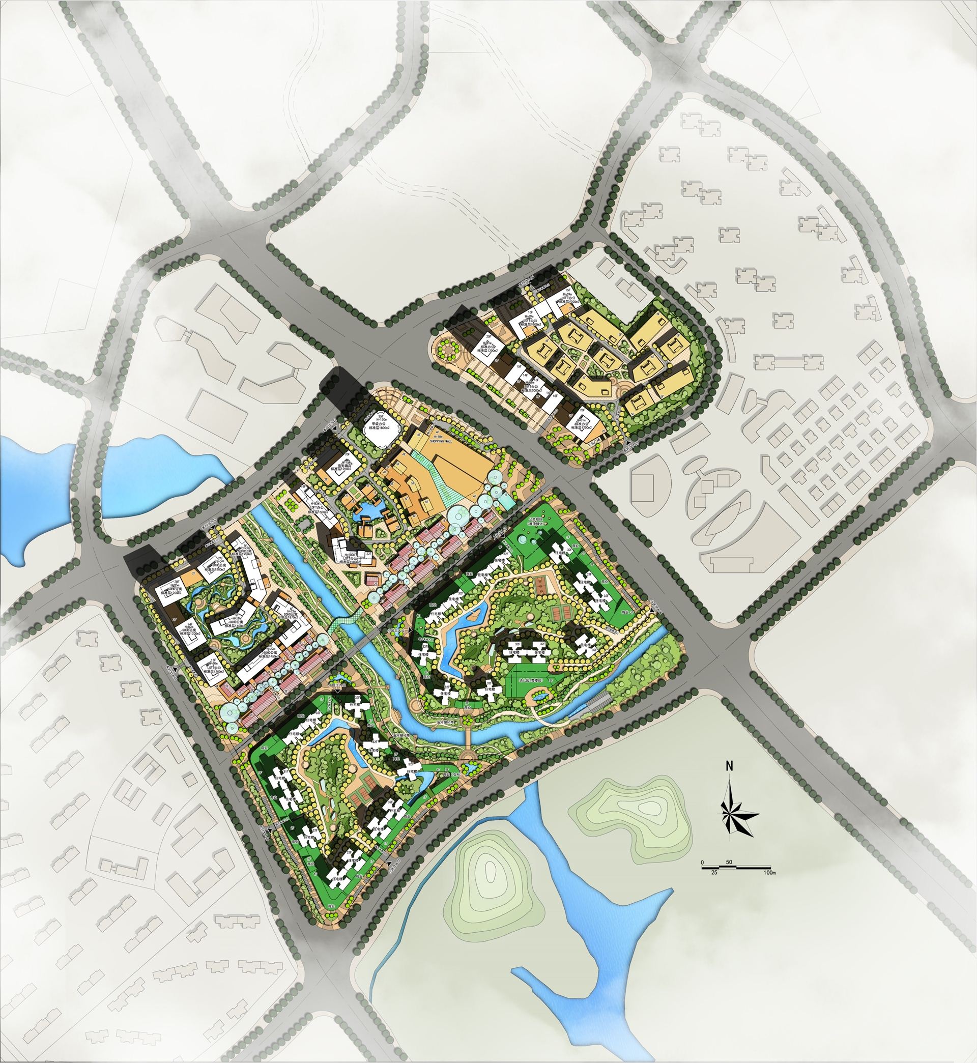 本案基地位于广州市萝岗区北部、中新知识城南起步区内。本项目采用场景拼贴的手法,着力打造成为新加坡商务、商业、文化在广州的标签性聚集地;本地消费者体验新加坡特色文化、生活方式的目的地。
