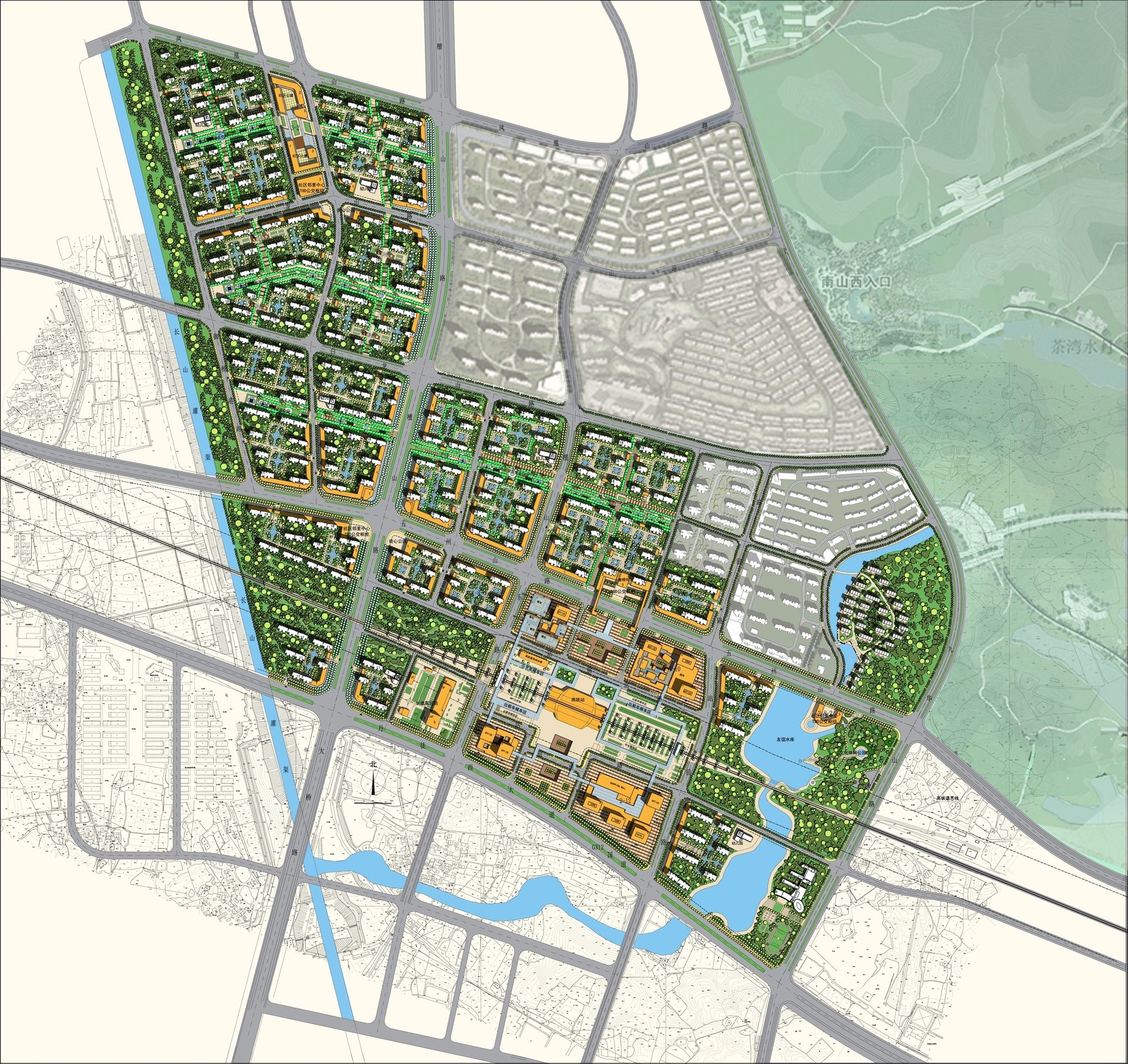 本项目位于镇江,古称“宜”“朱方”“丹徒”,是江苏省辖市,南京都市圈核心层城市,是一座区位独特、条件优越的交通枢纽城。本项目力求打造成为城市化载体、产业升级引擎、经济走廊门户。项目设计采用ETOD布局模式的概念(ECOLOGY TRANSIT ORIENTATION DEVELOPMENT),是以生态为导向的TOD布局模式,偏重于对城市机能平衡生长和环境平衡发展的考虑,通常具有以下5个特征:公交导向、尊重环境、规模合理、有机生长、用地混合。基于该项目整体地块依山傍水,自然条件得天独厚,适宜构建生态化的TOD新社区,设计把周边自然条件引入各个居住社区内部,与各个层级的步行网络形成互动,构建一座紧凑、复合、宜人、节能的ETOD新城。