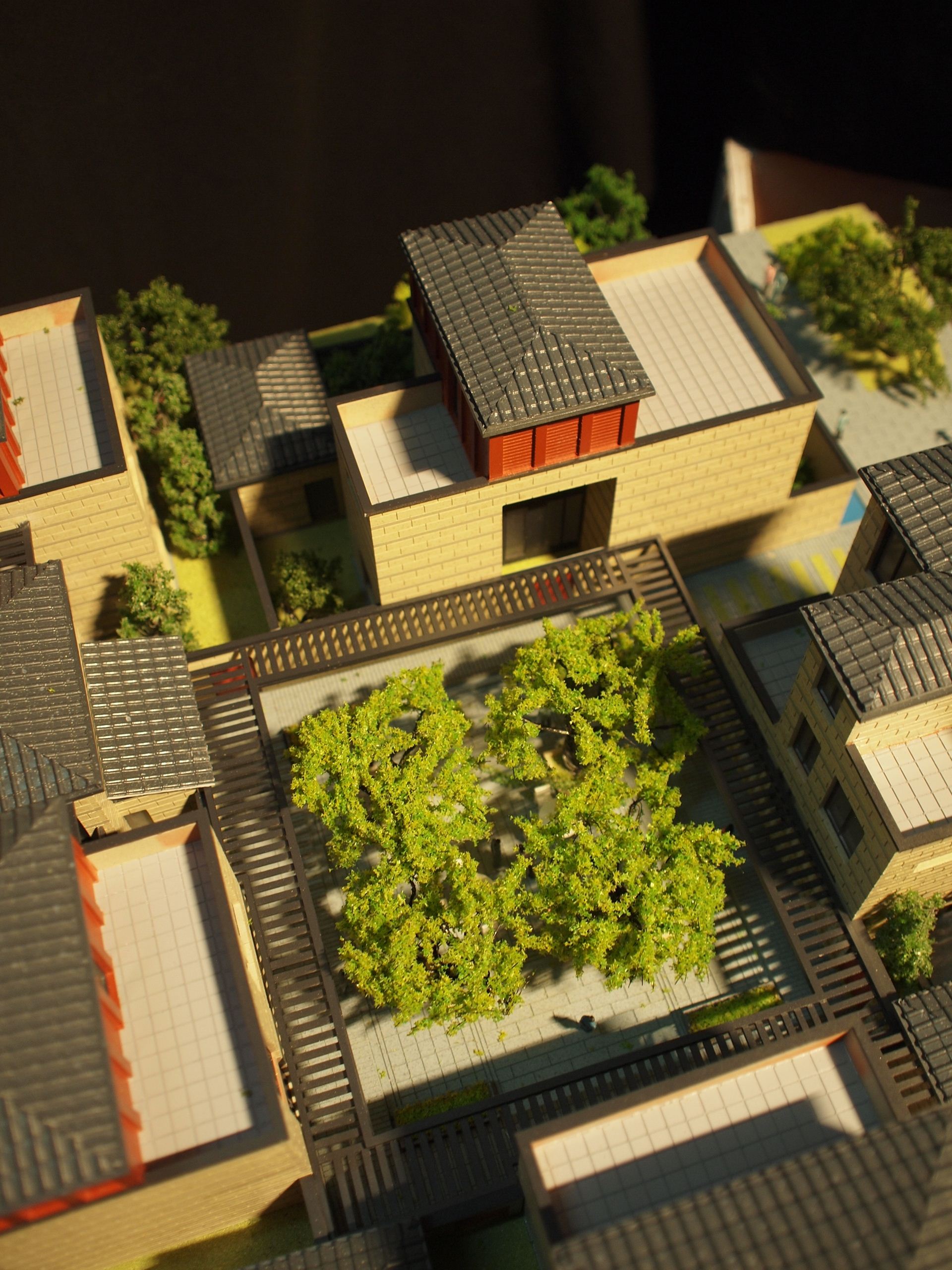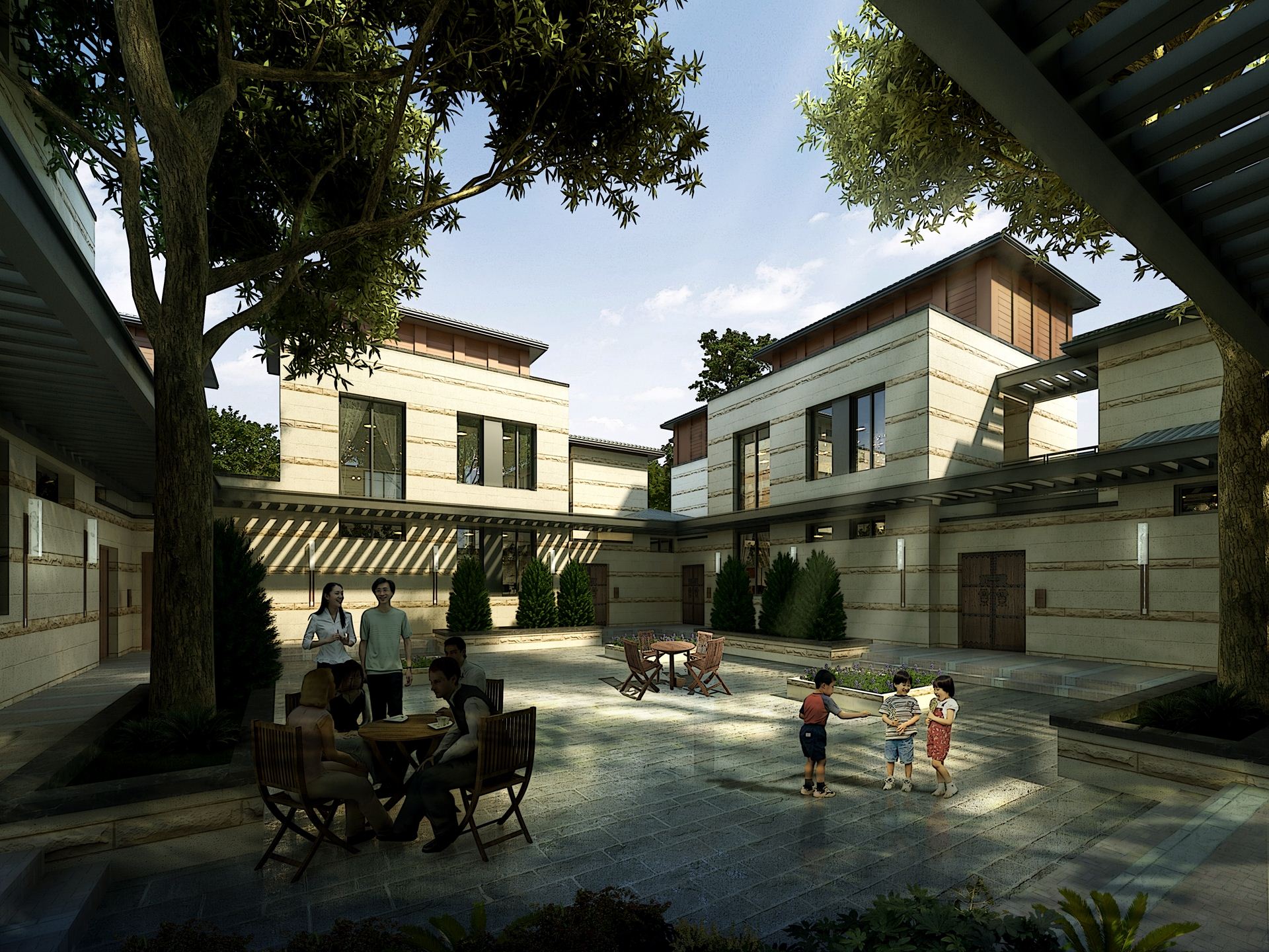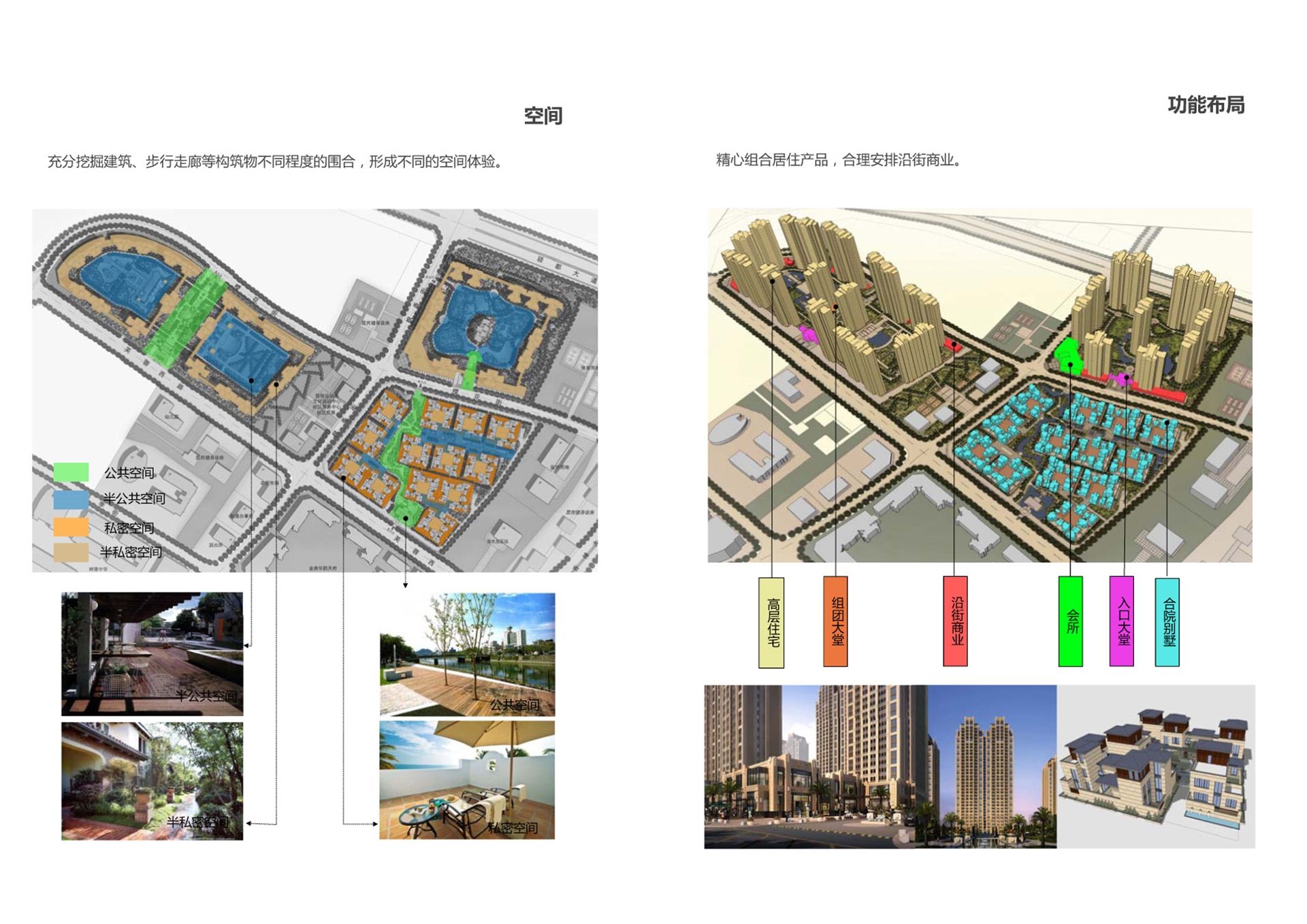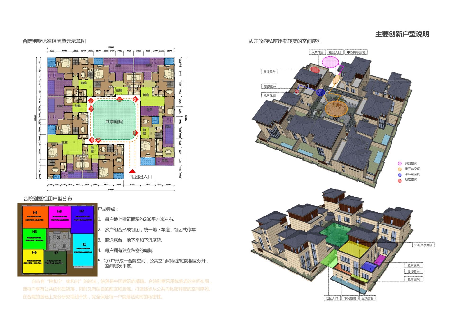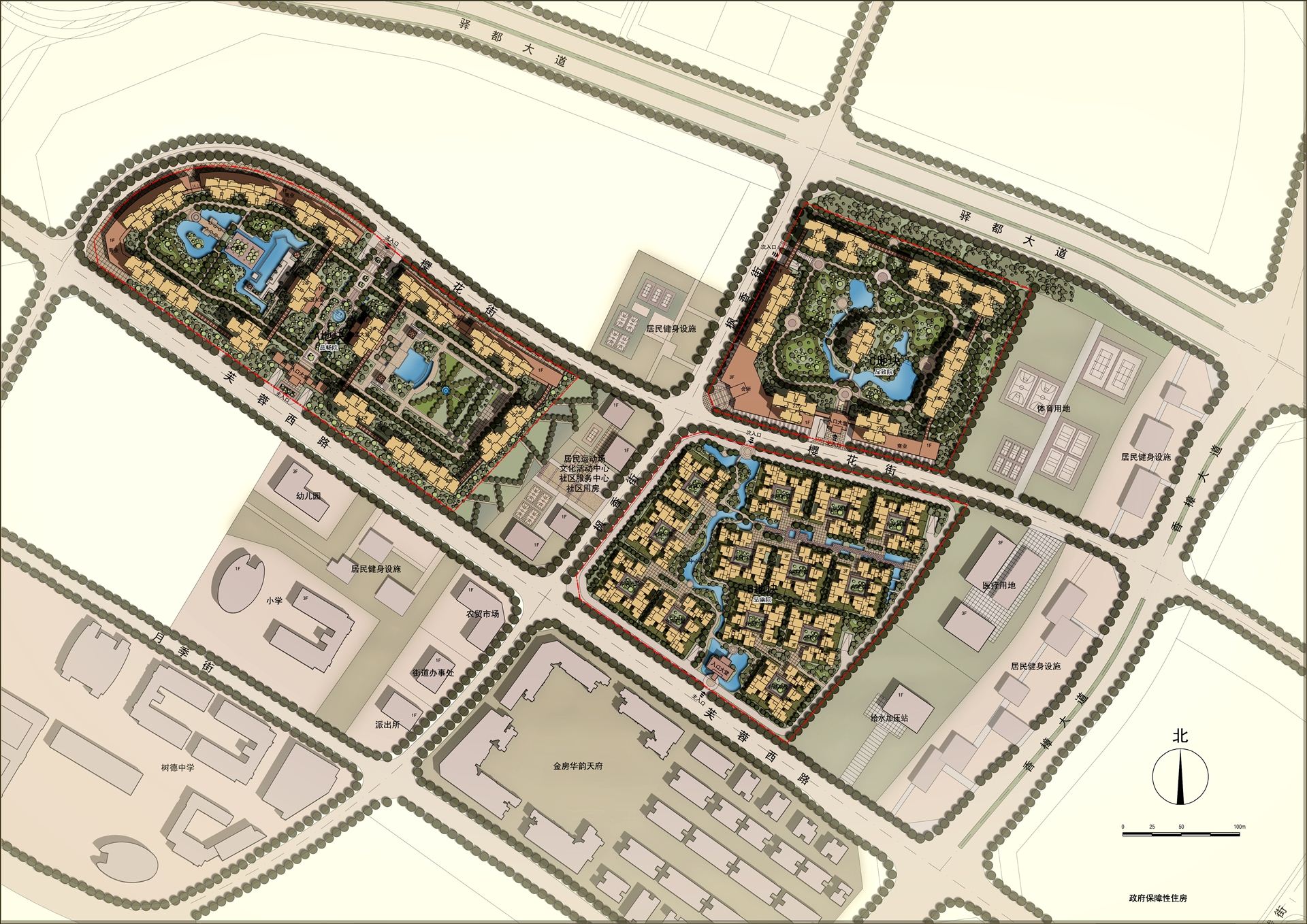 基地三个地块在形态上之间成“品”字布局态势。品,意义上是数量多种类多、 等级(上品)、品性(佳品)、格调(诗之品有九)也;院,以院落为载体,提取传统四川民居文化之精髓,住宅布局自由;以院为基本组合单位,院内有通风天井,用柱廊联系各个房间,组成街坊;建筑造型轻盈精巧,与环境融为一体,“天人合一”把周围的大环境引入封闭的小环境中。