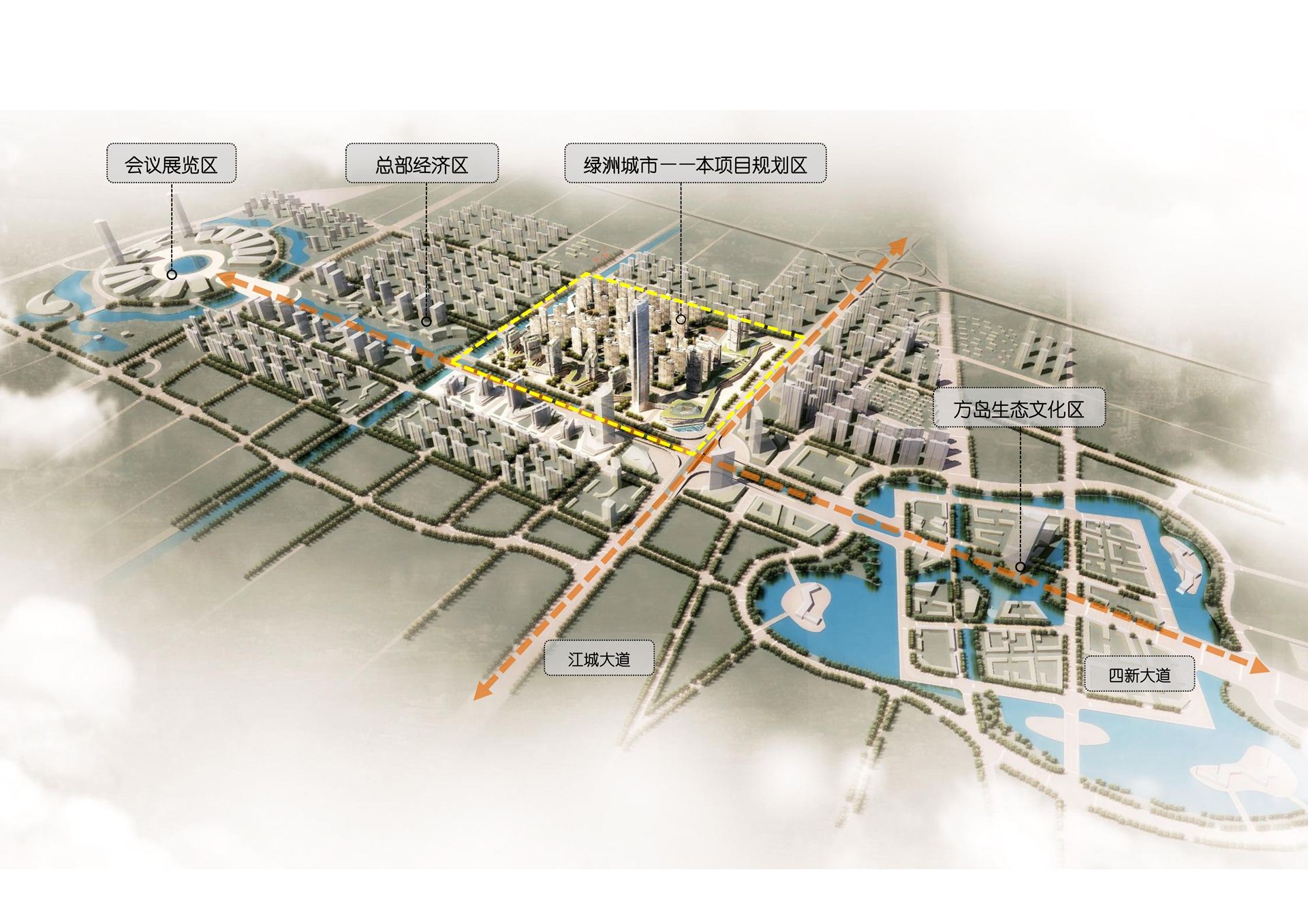 本项目是要打造一座高效、集聚、共享、生态并具有前瞻性的绿洲城市,将成为未来四新生态新城的形象中心和话题核心。从形象、功能、产品、环境四方面着手,采取树立城市形象,创造话题焦点;为新兴产业提供集聚空间;多功能多产品的高效组织;树立生态新城低碳开发标杆四大策略,营造武汉首席生态中央活力体--绿海千帆。