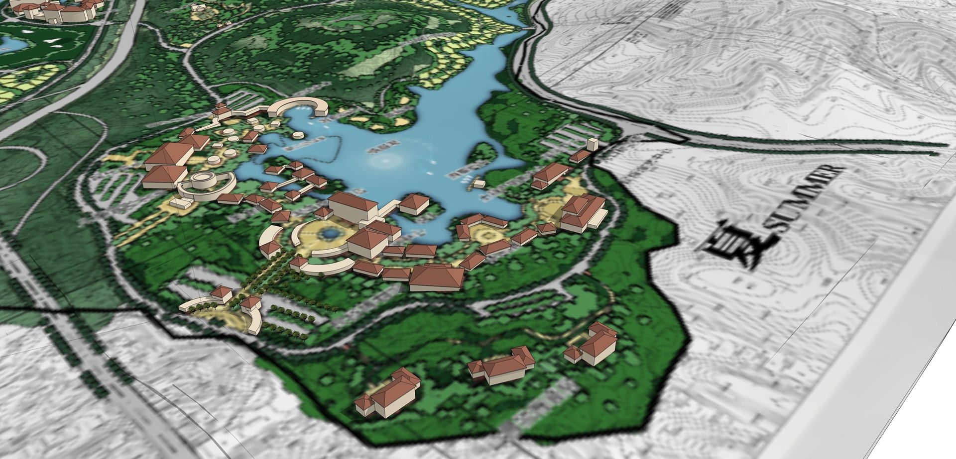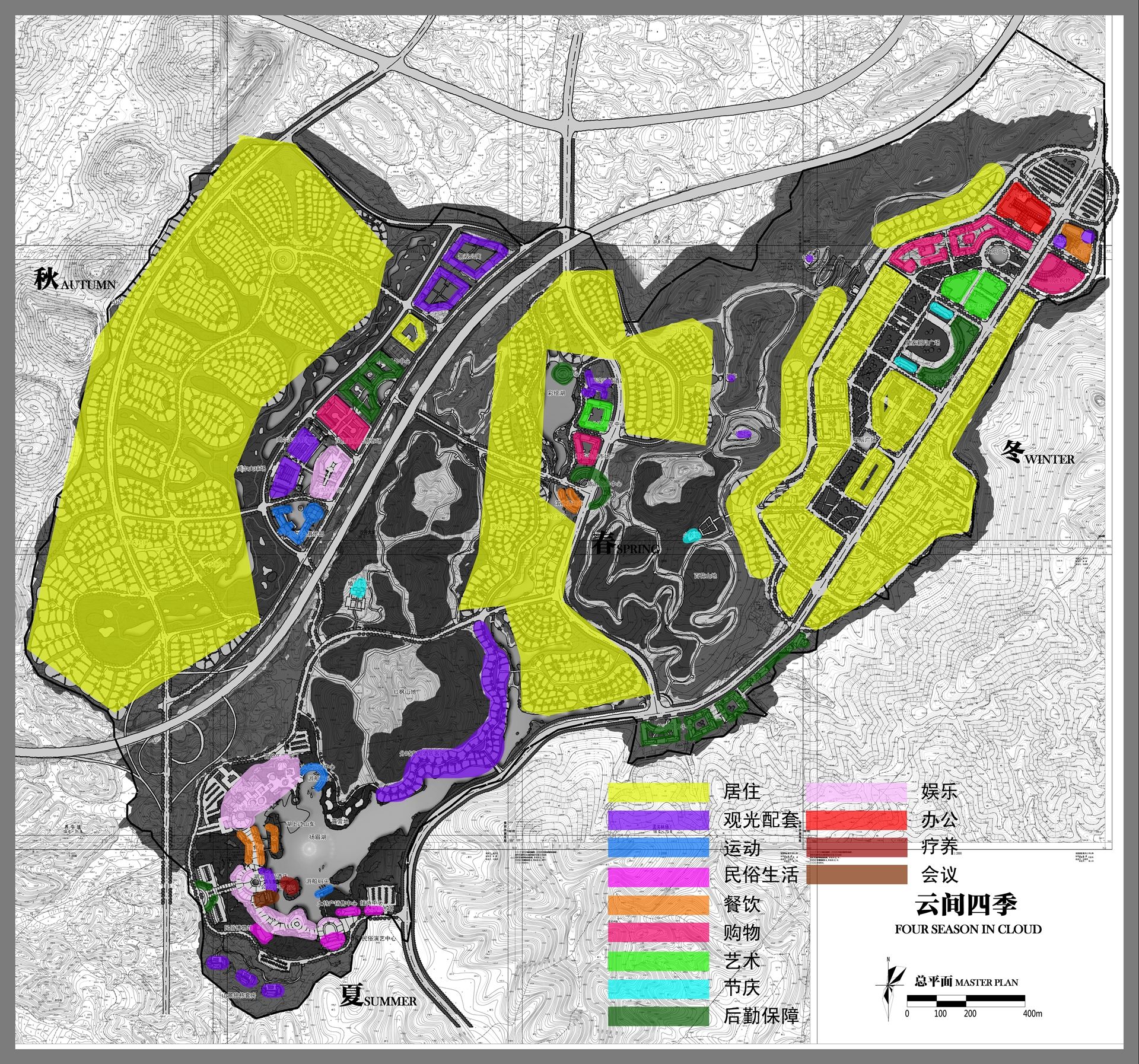 从本项目所处山水环境出发,规划提出以建立以四季休闲游为核心的系列风情小镇为发展方向。风情小镇作为与自然完美结合的城镇类型,即可以满足高端居住的需求,又能带动特色休闲旅游。