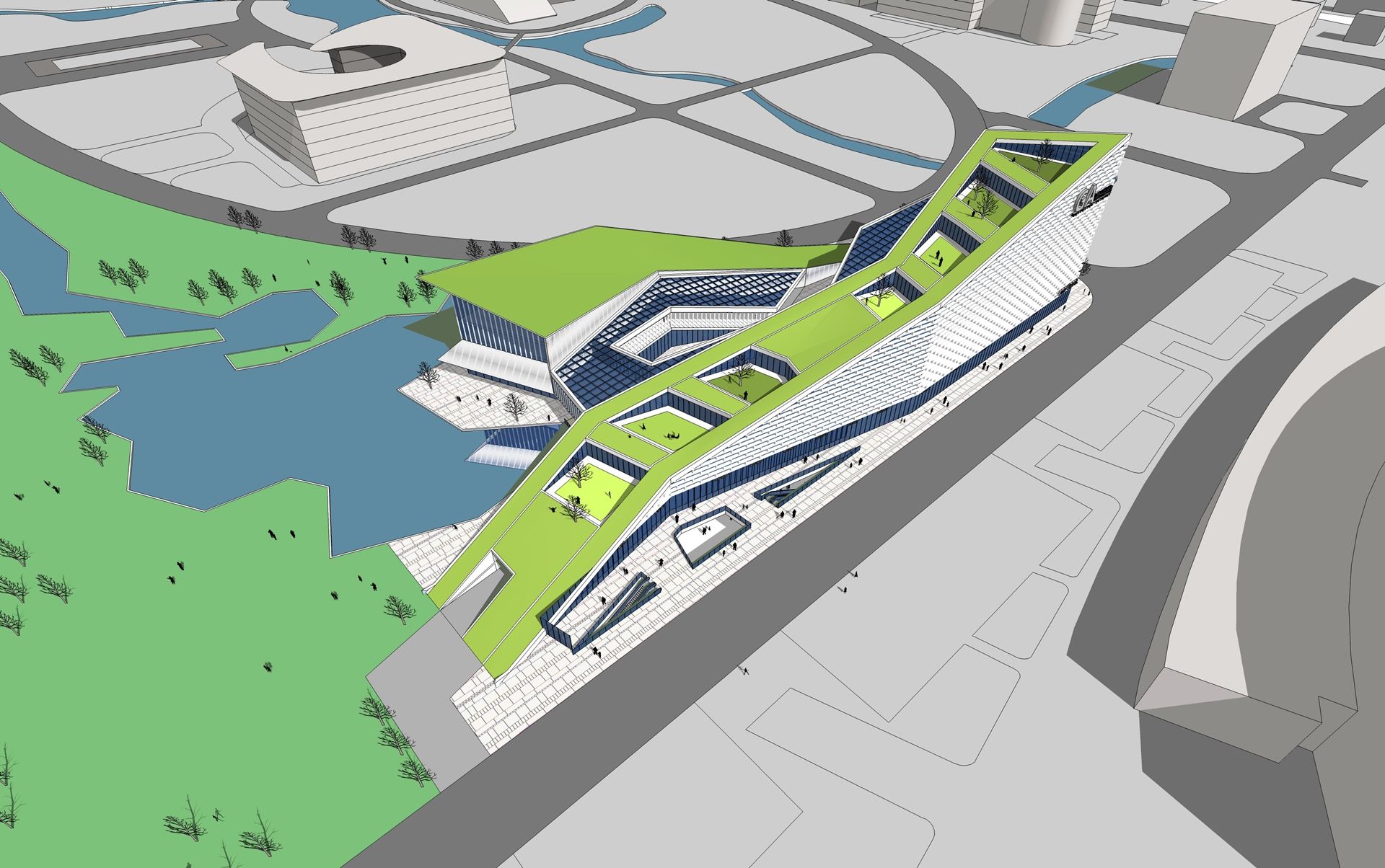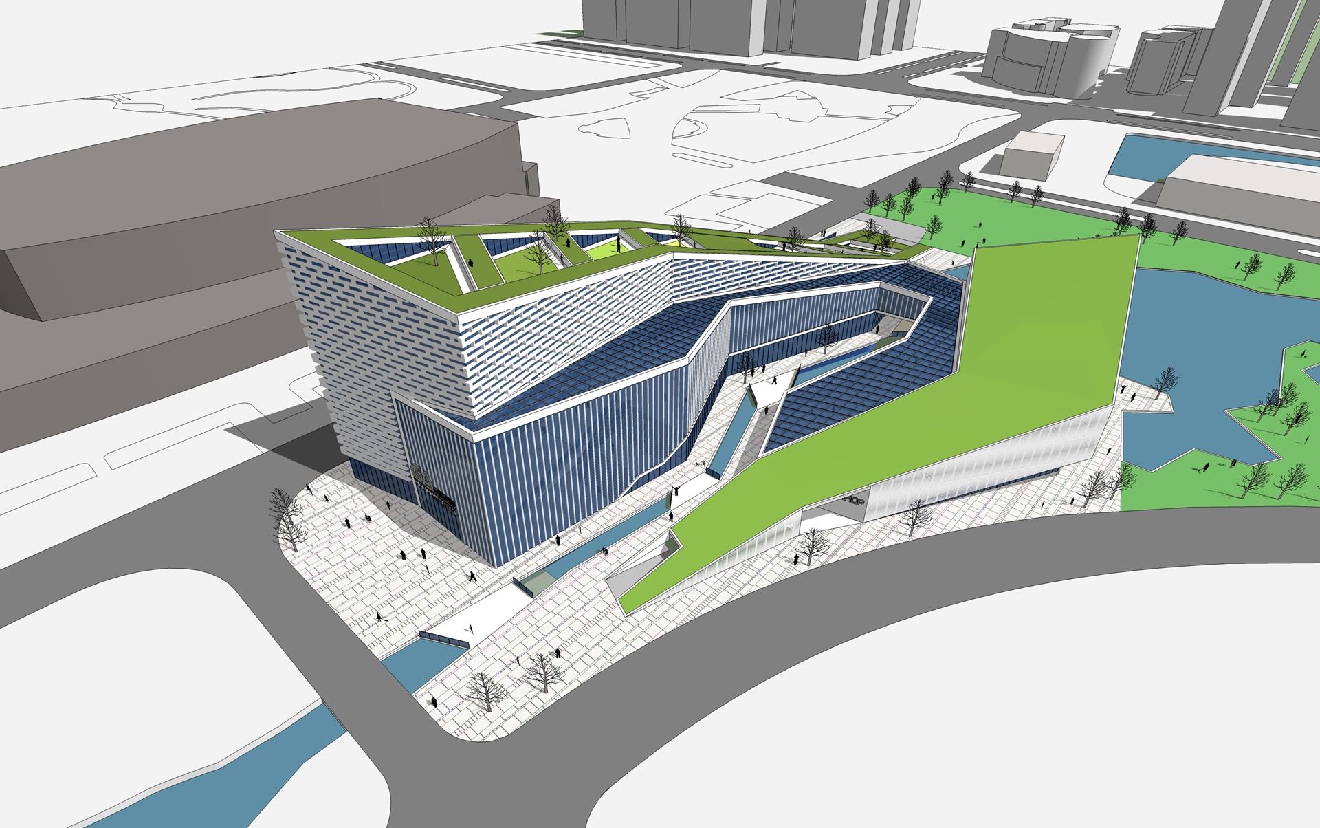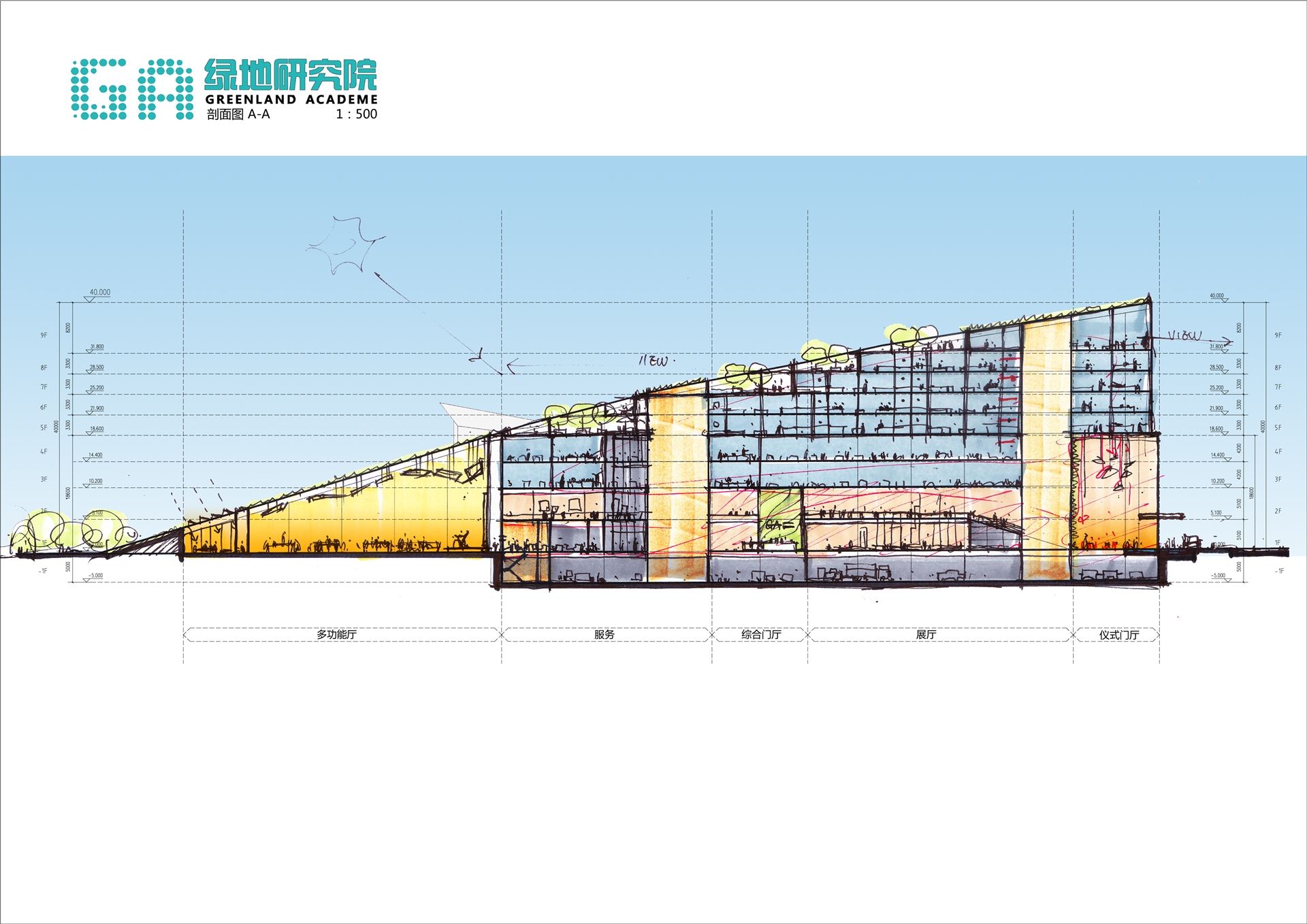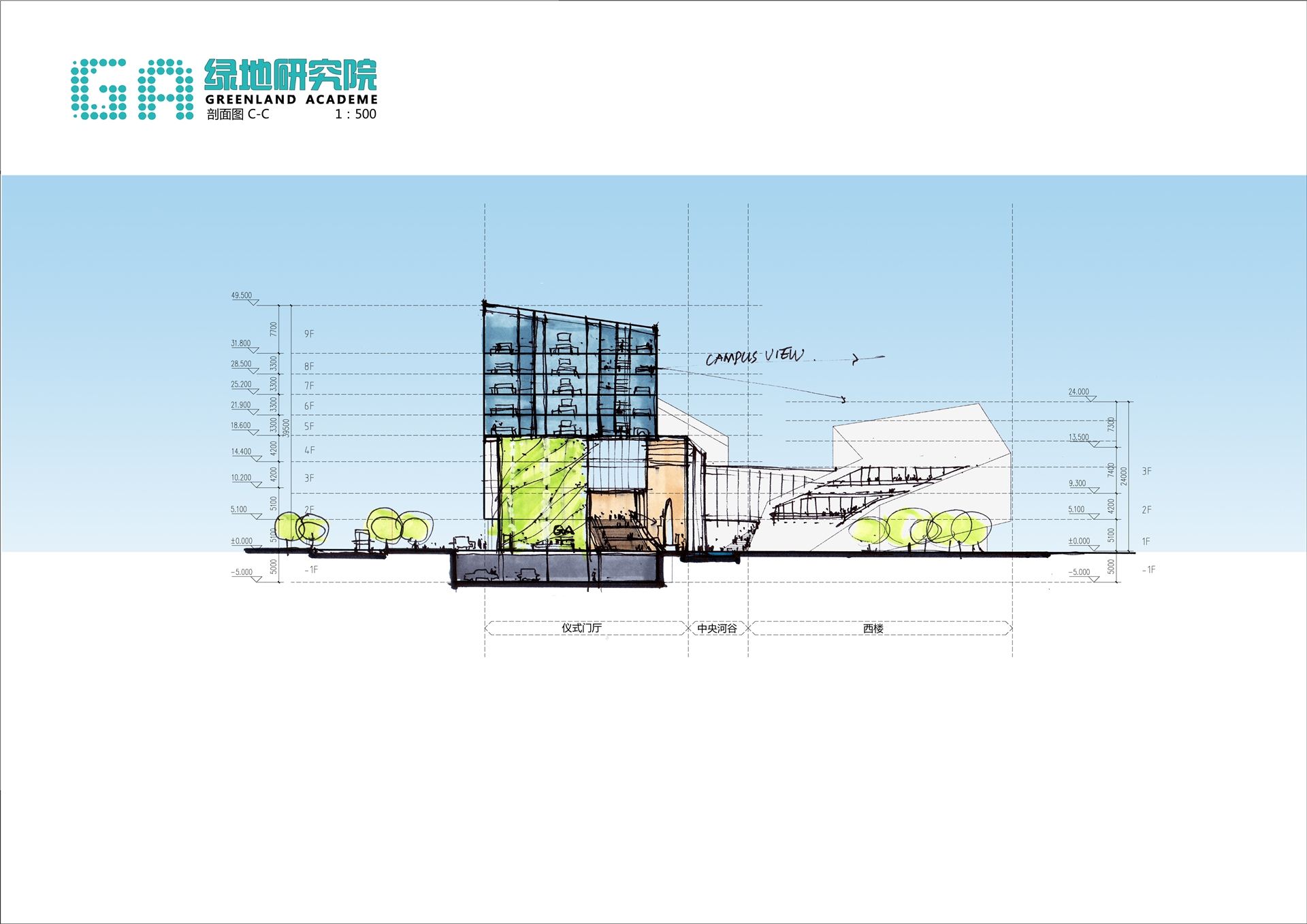 本项目位于上海松江视觉艺术学院东南角的一块用地结合学院的办学理念与绿地的研究院的功能需求,进行功能整合,成为松江绿地研究院总共提出上个方案分别为“大地方案”,“内外方案”,“交融方案”