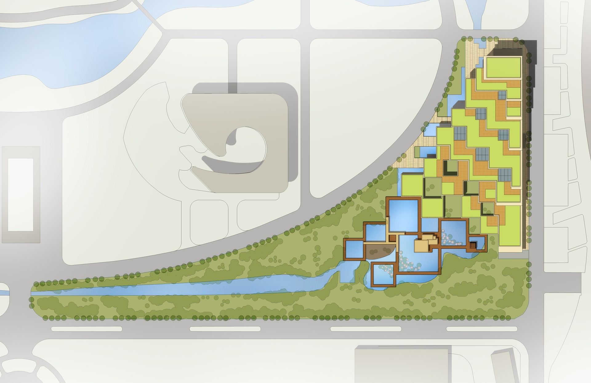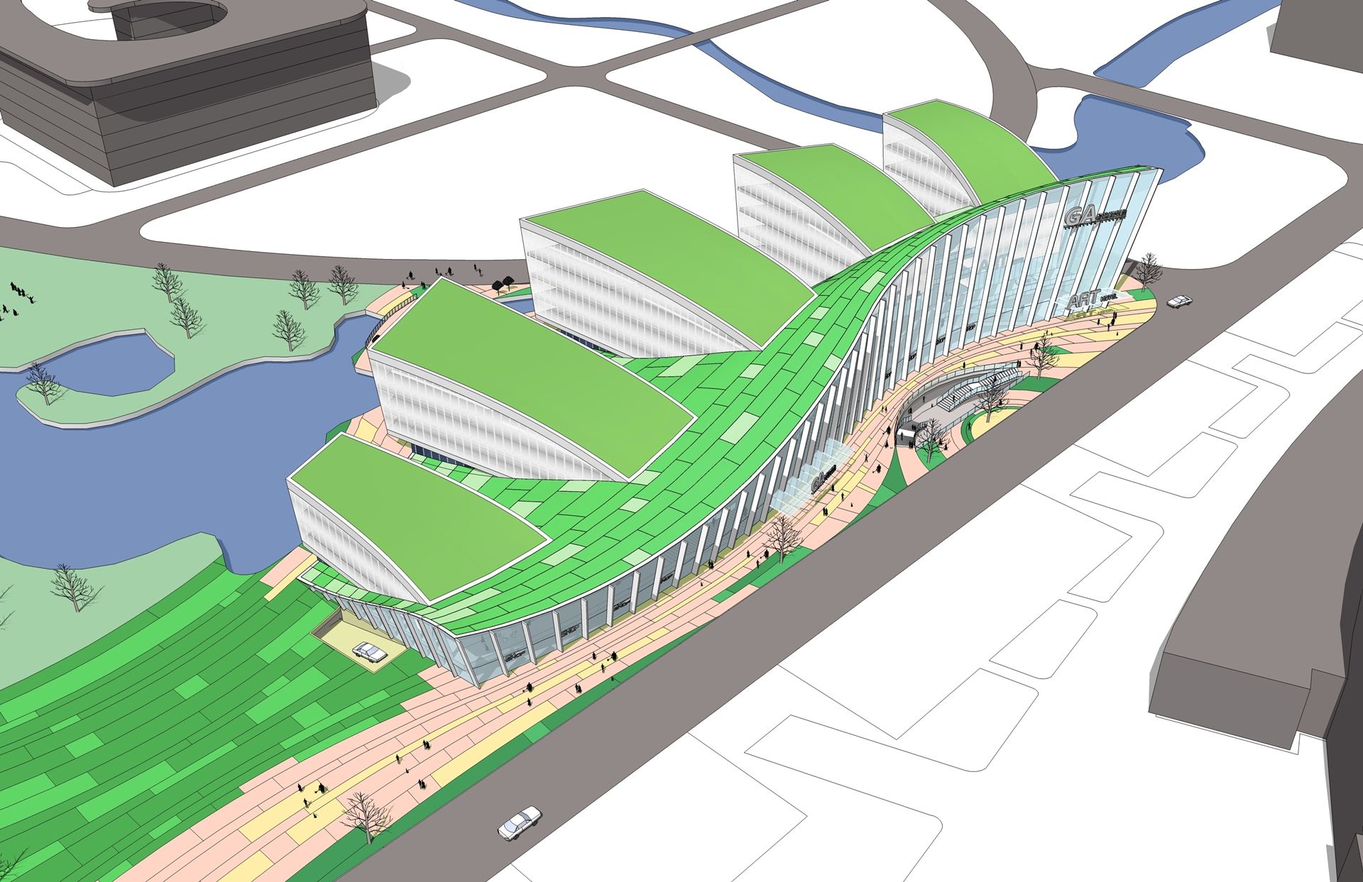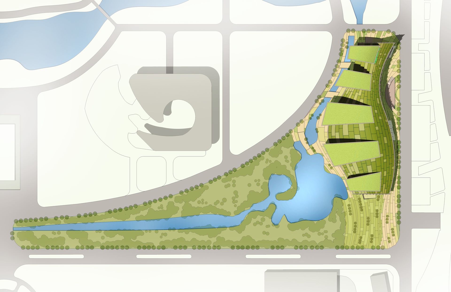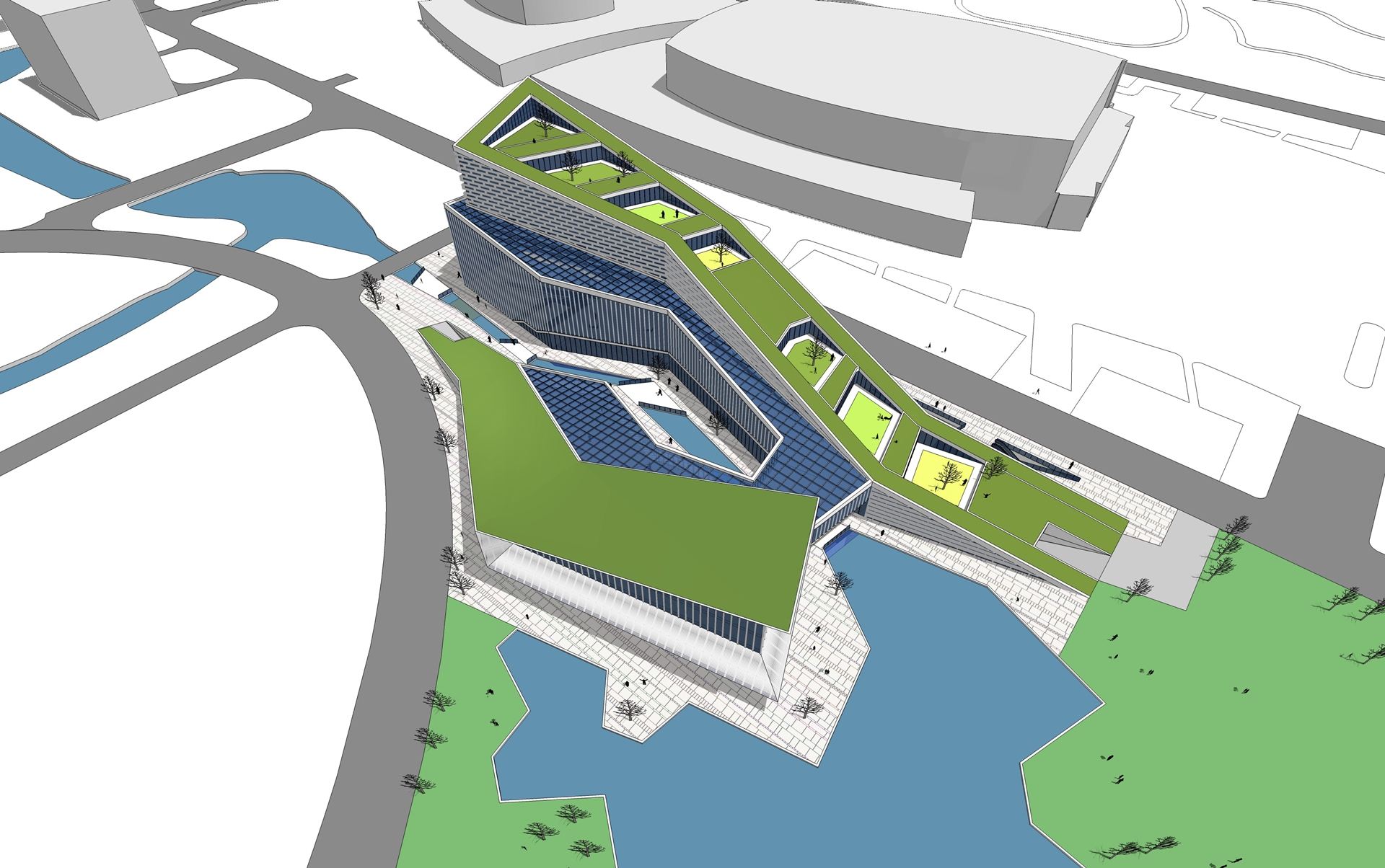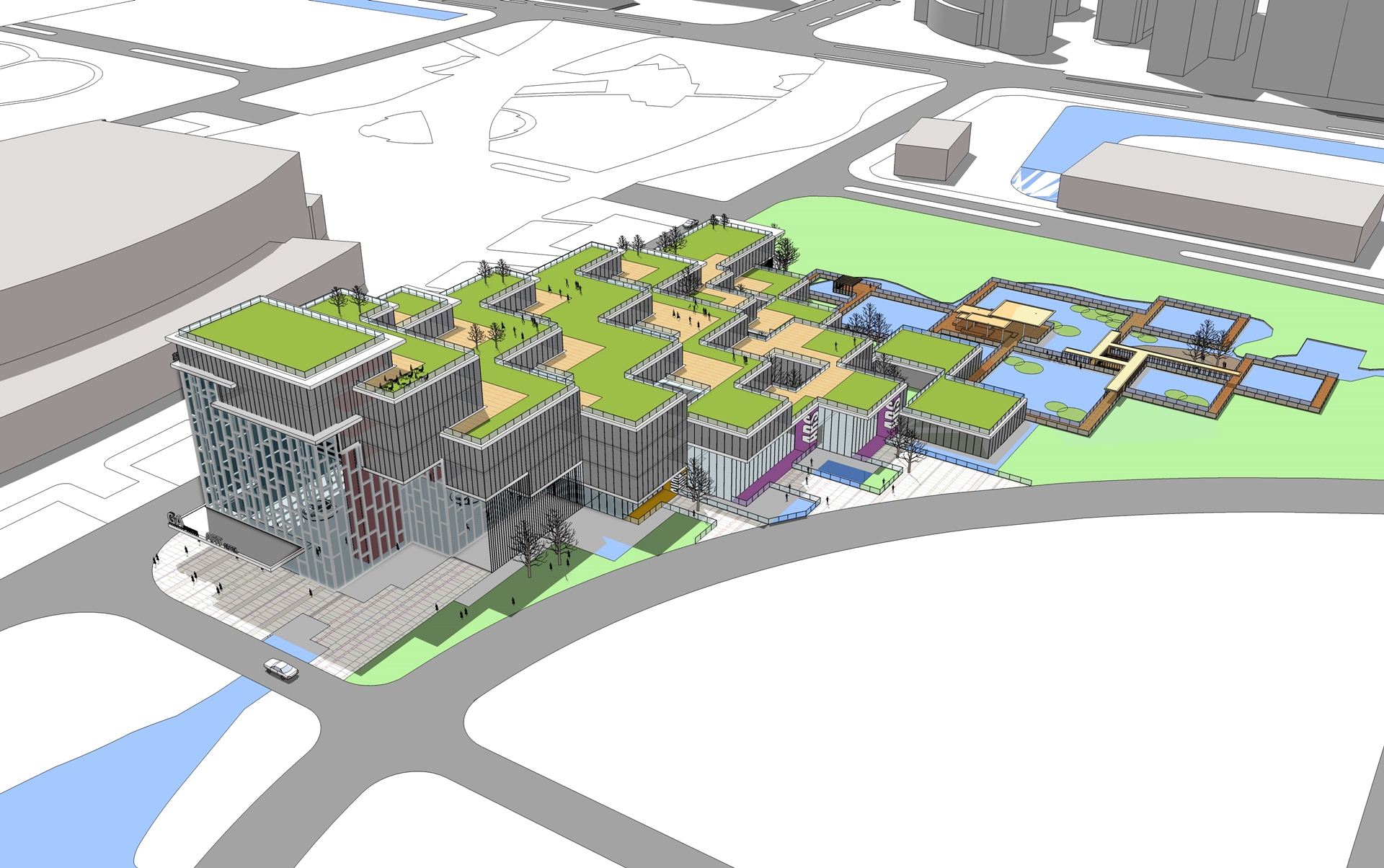 本项目位于上海松江视觉艺术学院东南角的一块用地结合学院的办学理念与绿地的研究院的功能需求,进行功能整合,成为松江绿地研究院总共提出上个方案分别为“大地方案”,“内外方案”,“交融方案”