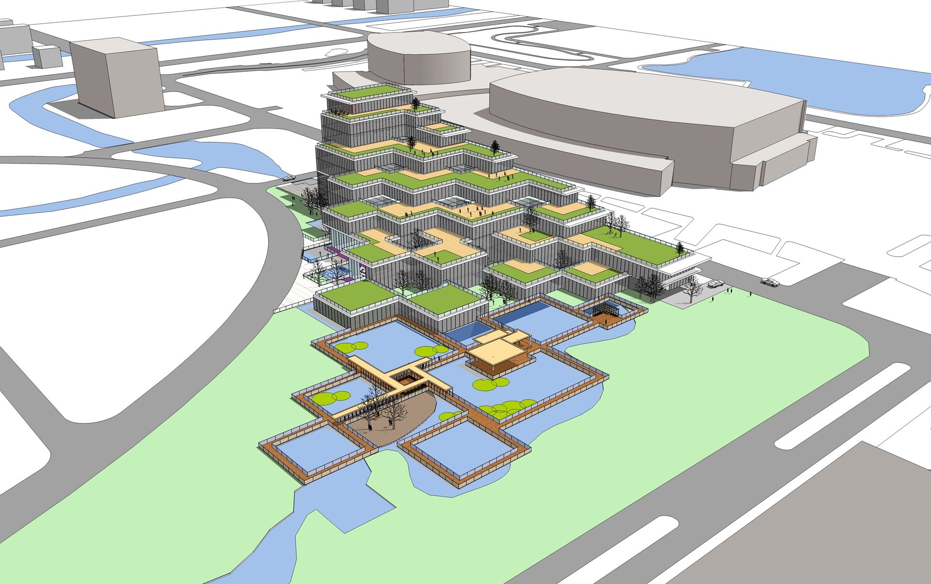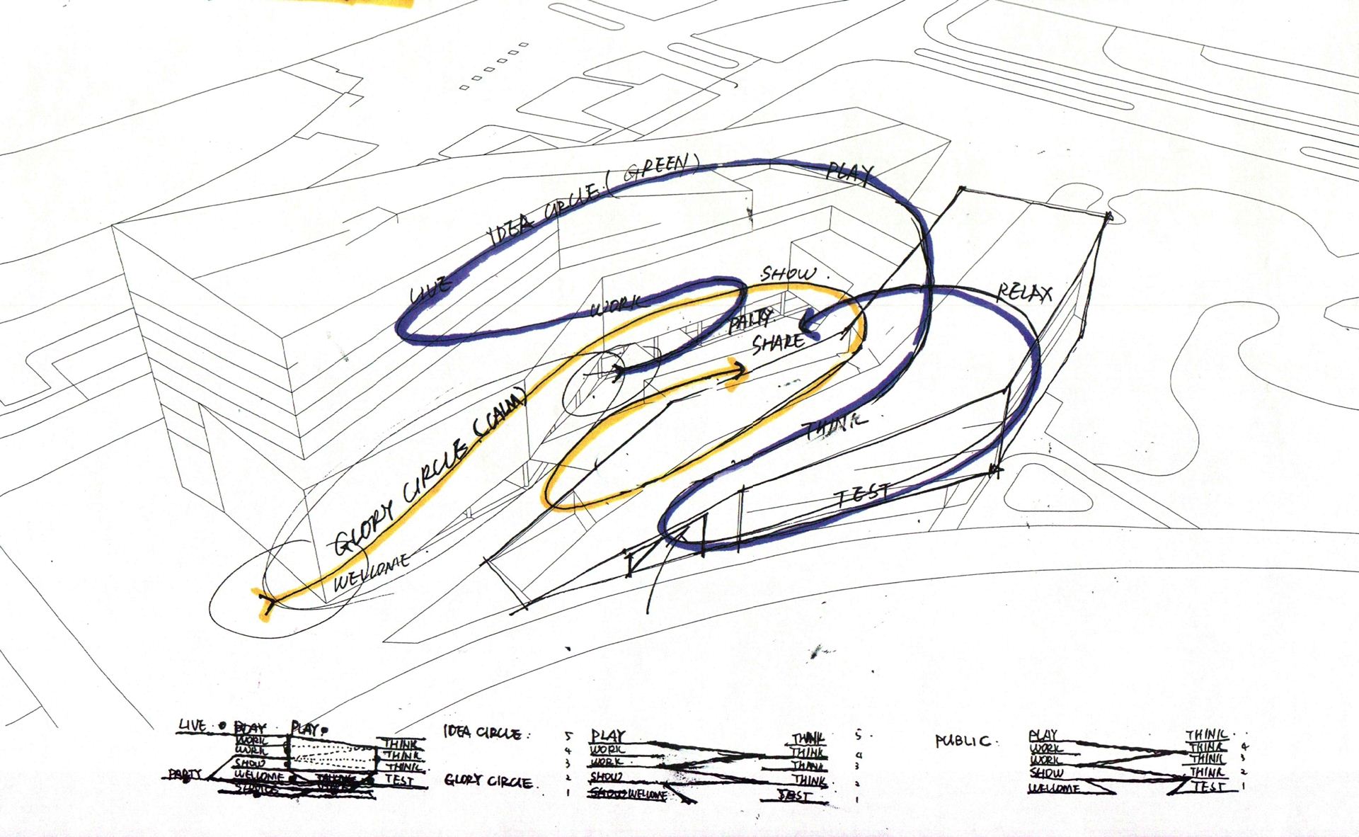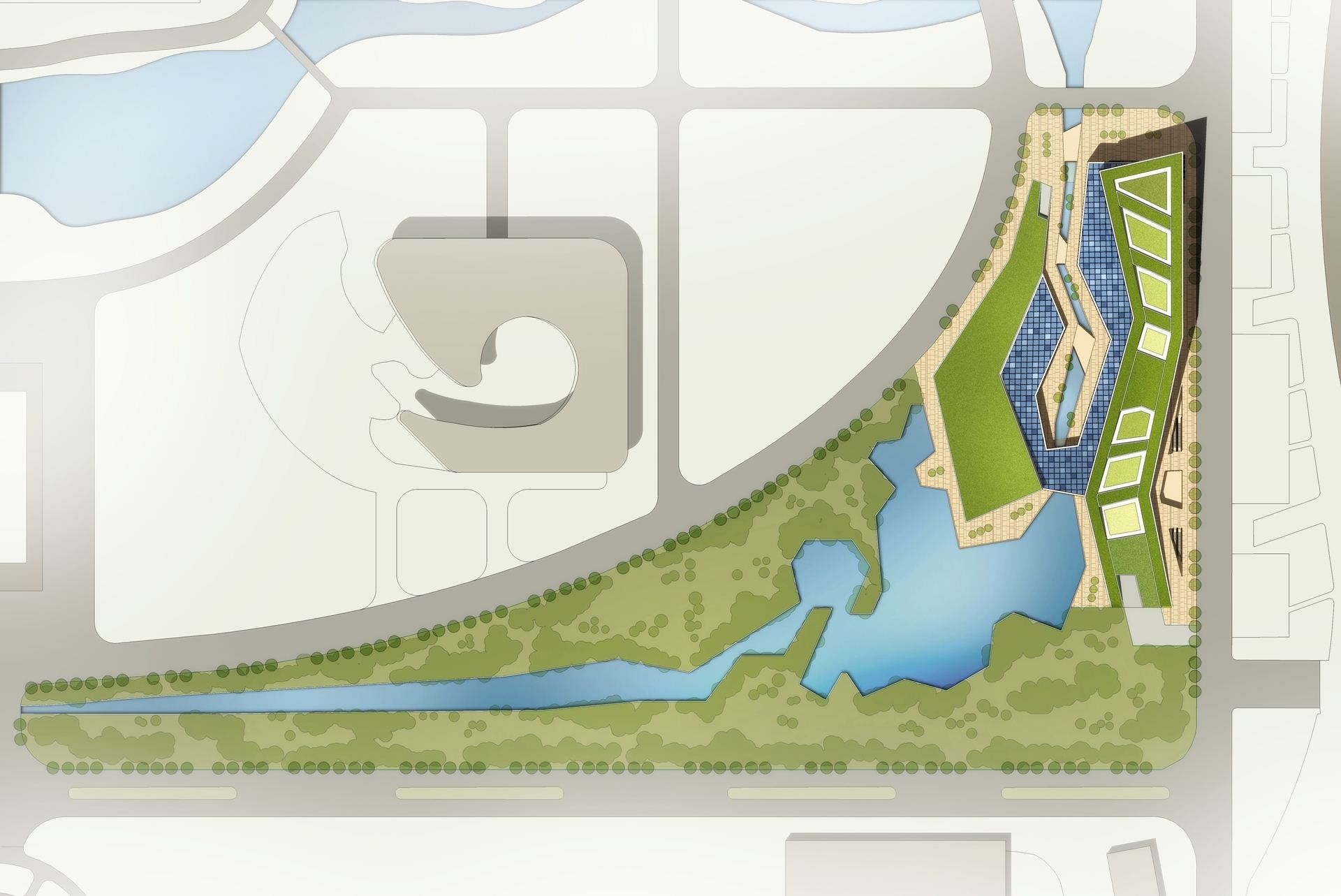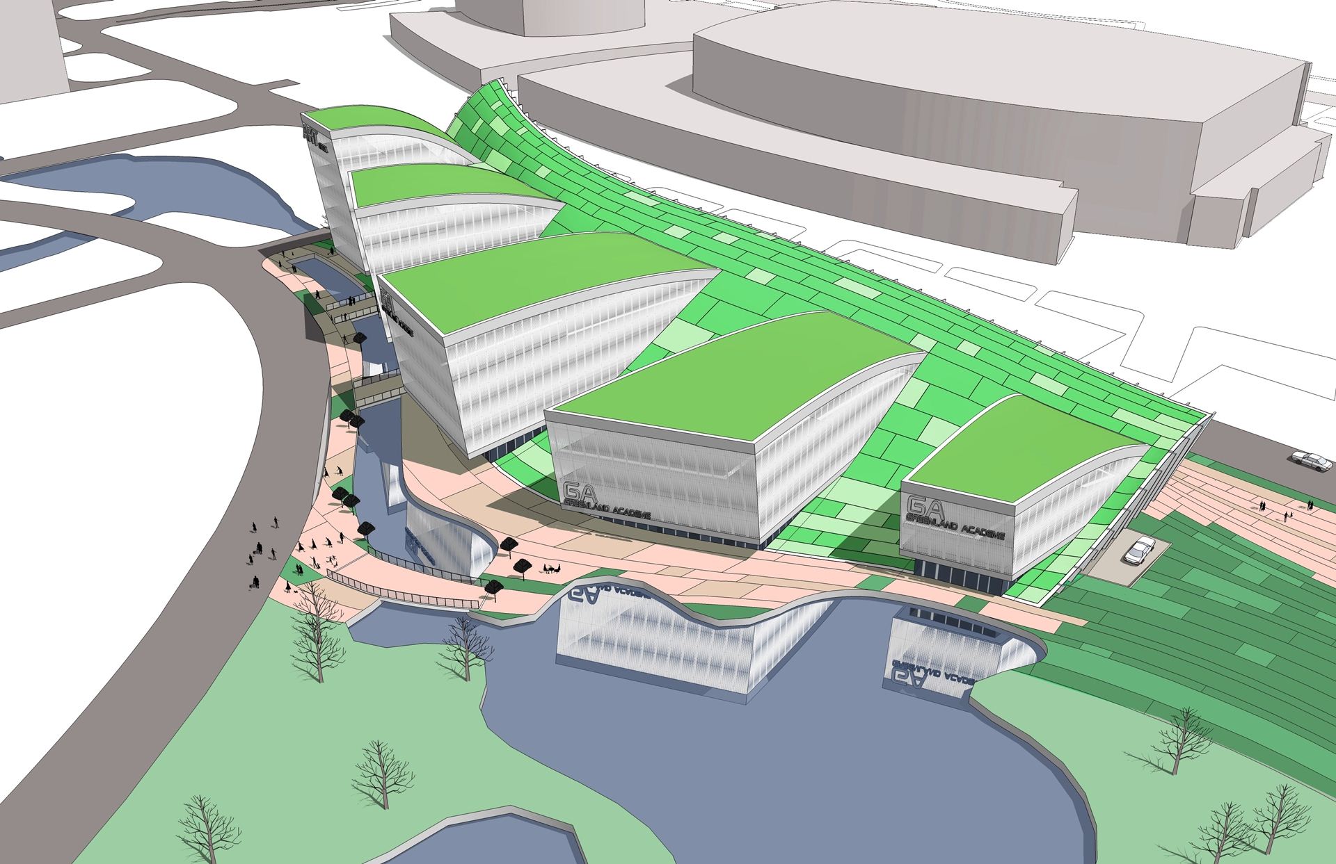 本项目位于上海松江视觉艺术学院东南角的一块用地结合学院的办学理念与绿地的研究院的功能需求,进行功能整合,成为松江绿地研究院总共提出上个方案分别为“大地方案”,“内外方案”,“交融方案”