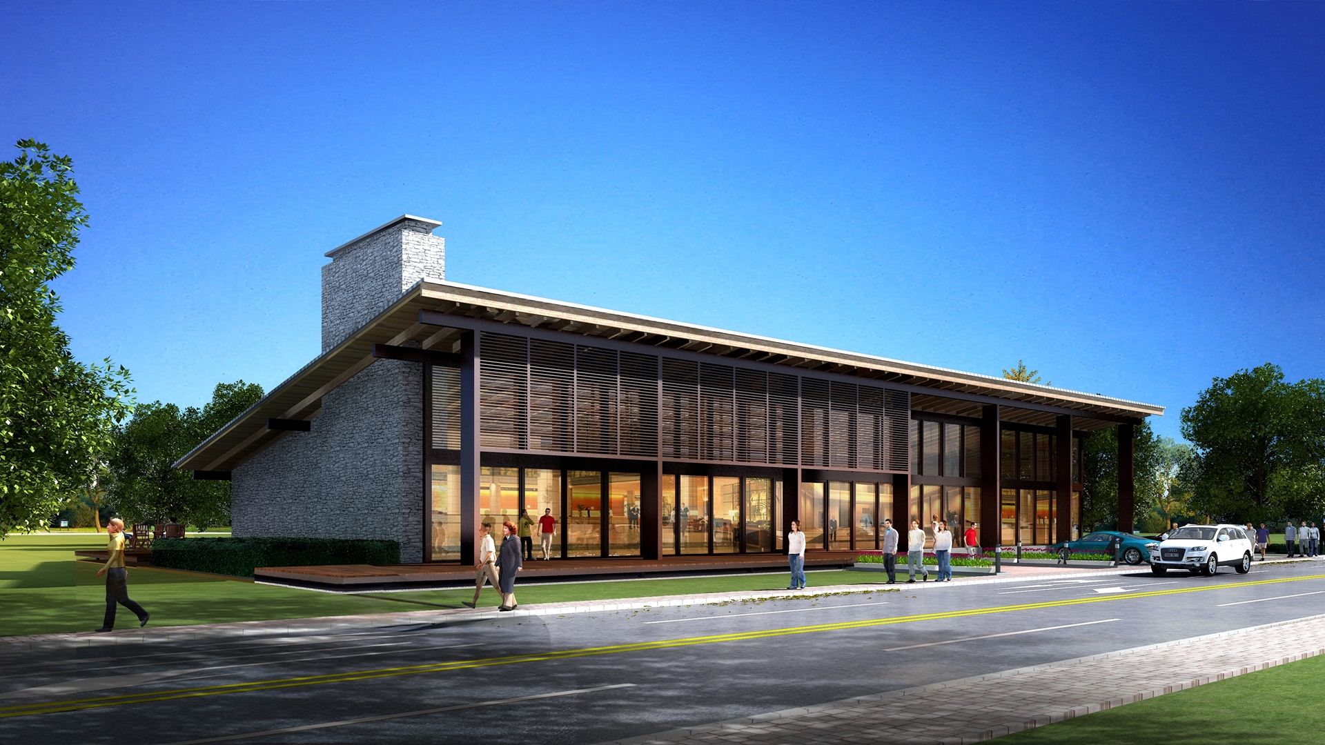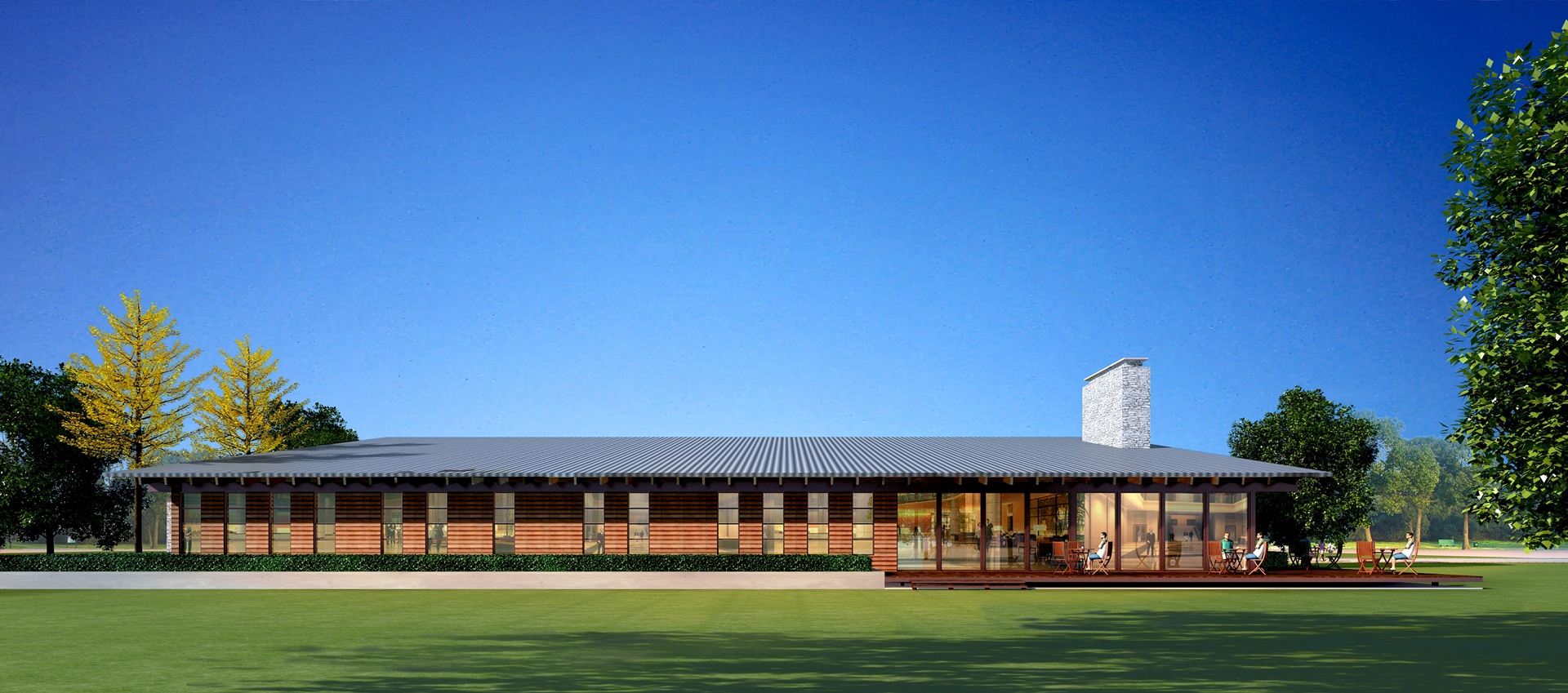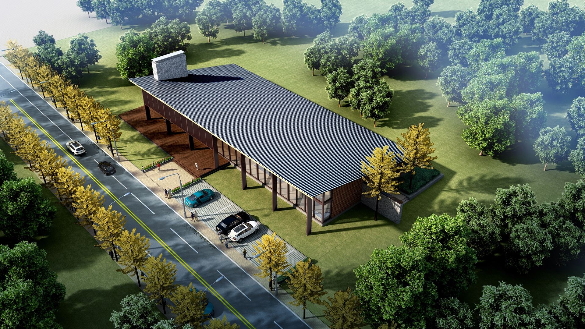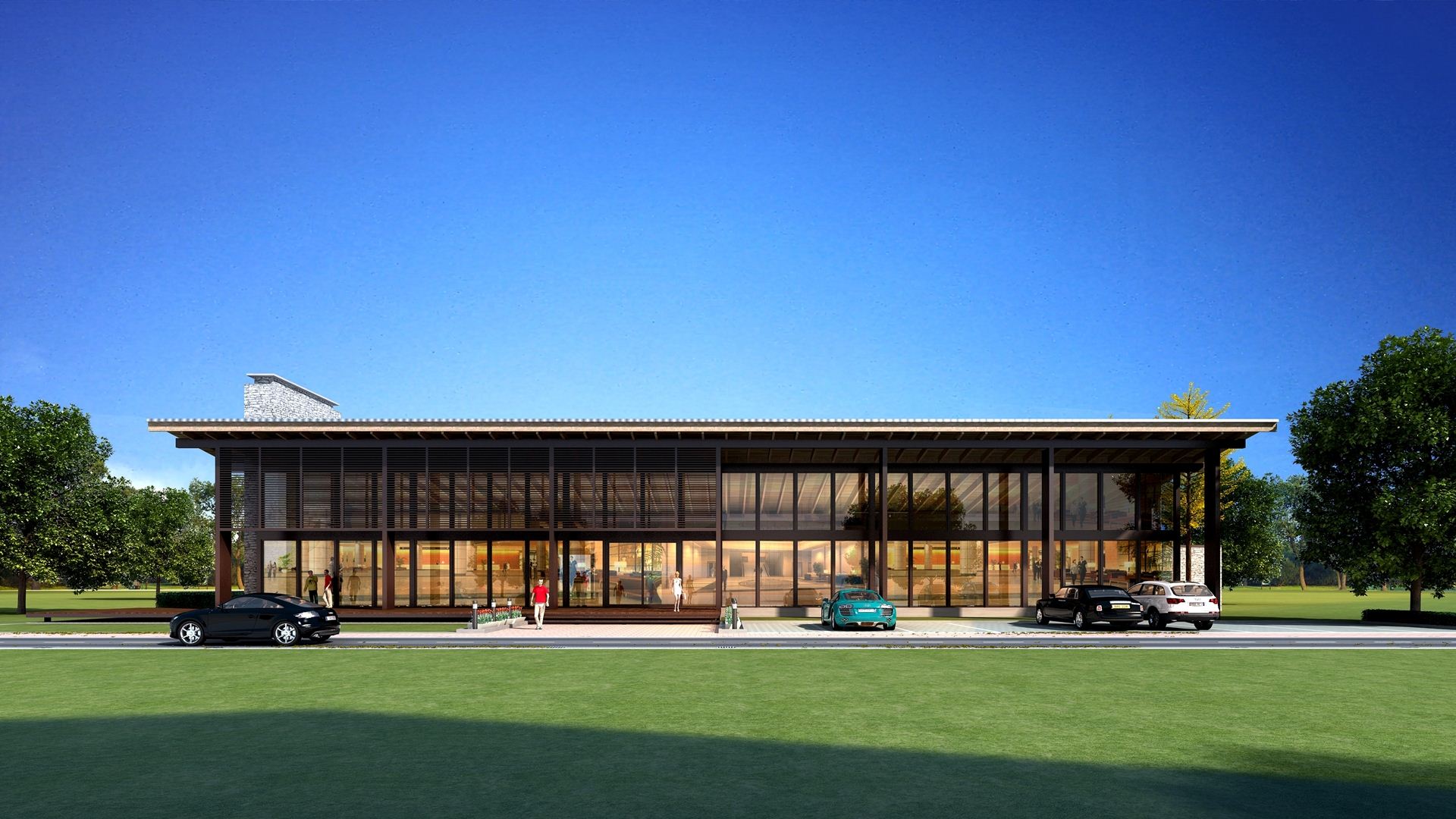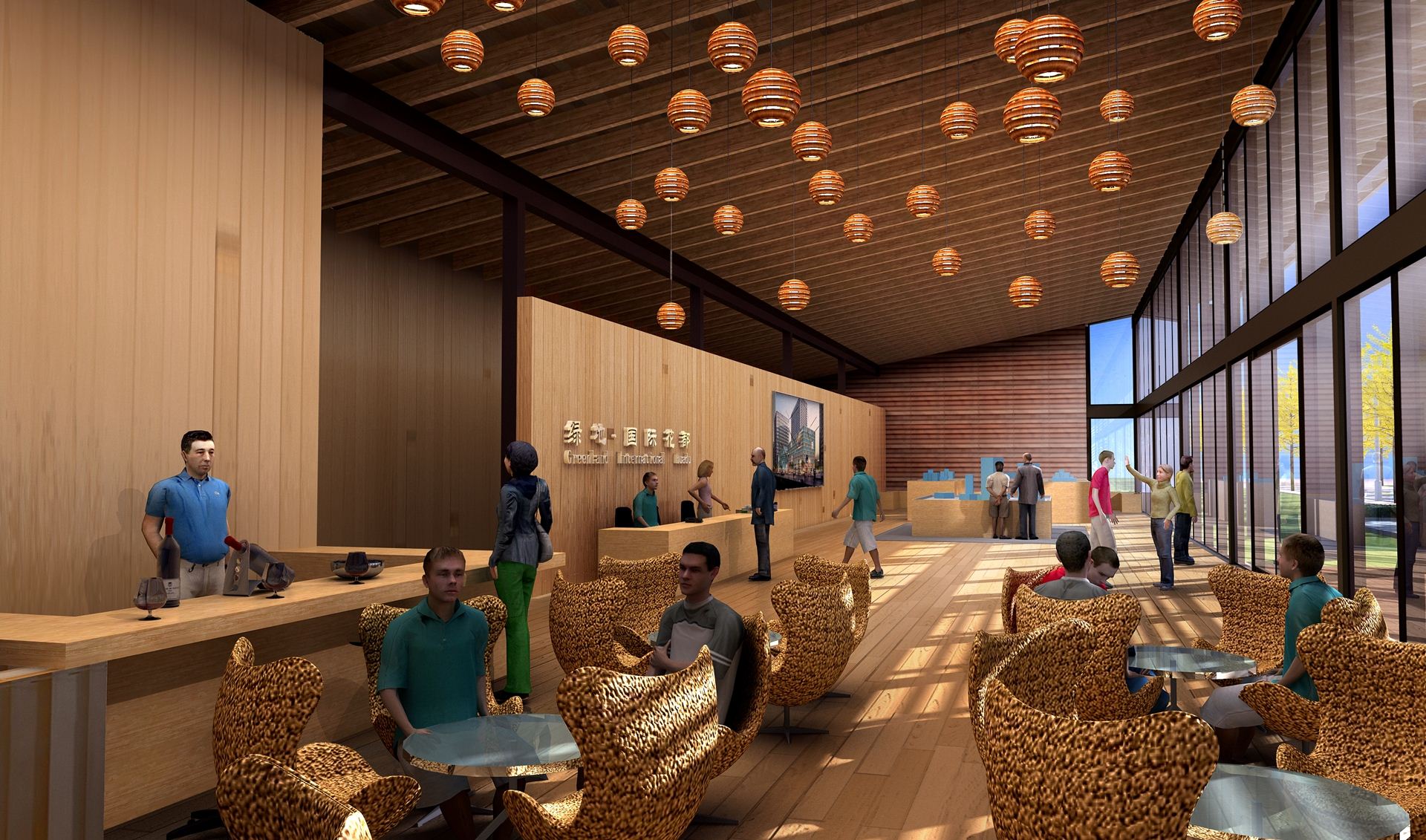 木结构售楼处 标准化构件组成,既满足功能和形象需求,又能缩短施工周期,快速投入使用 客户:绿地集团用地面积: 5800平方米 建筑面积: 3000平方米位置:大仝项目负责人:郭红旗项目建筑师:王强宏规划团队:林飞