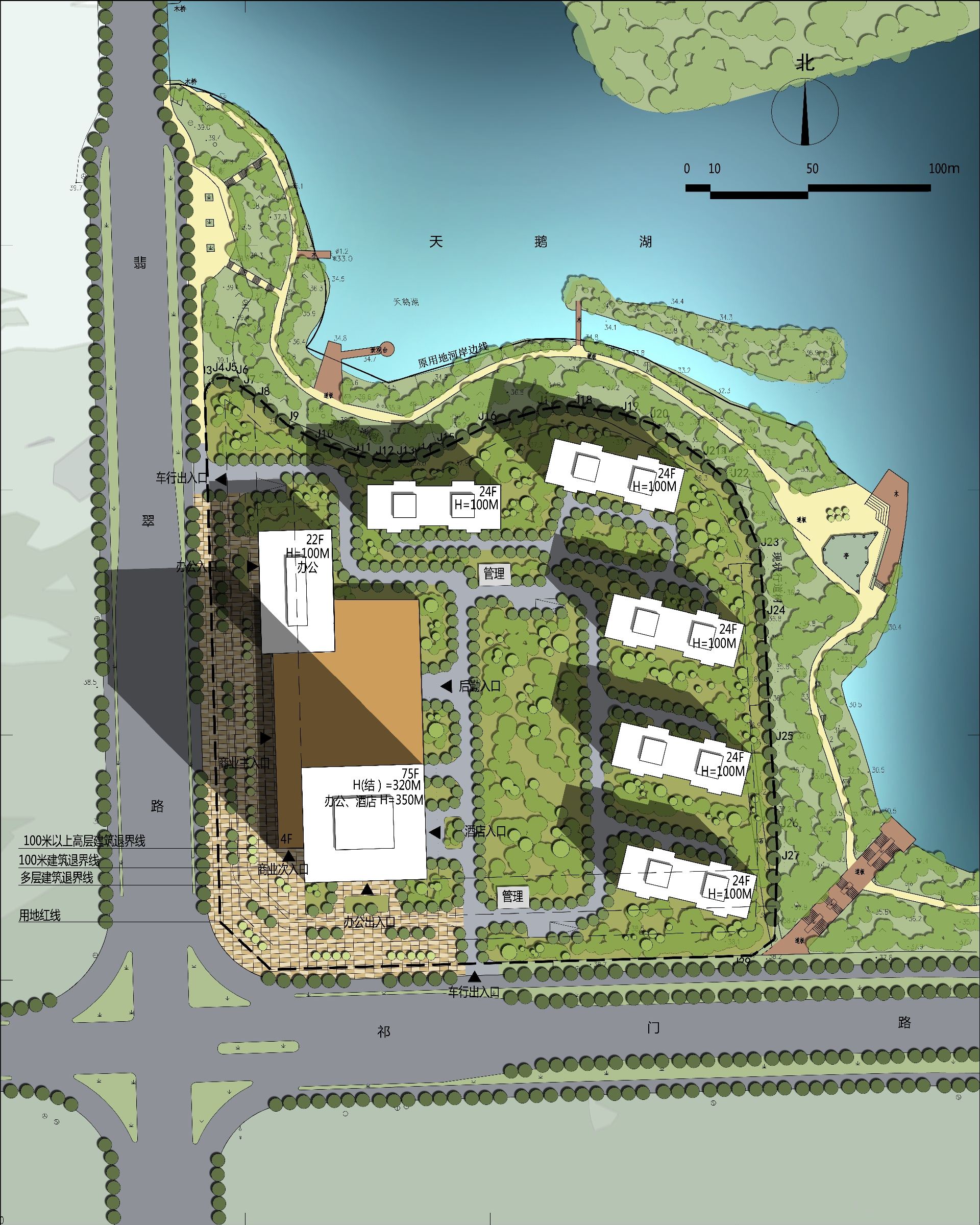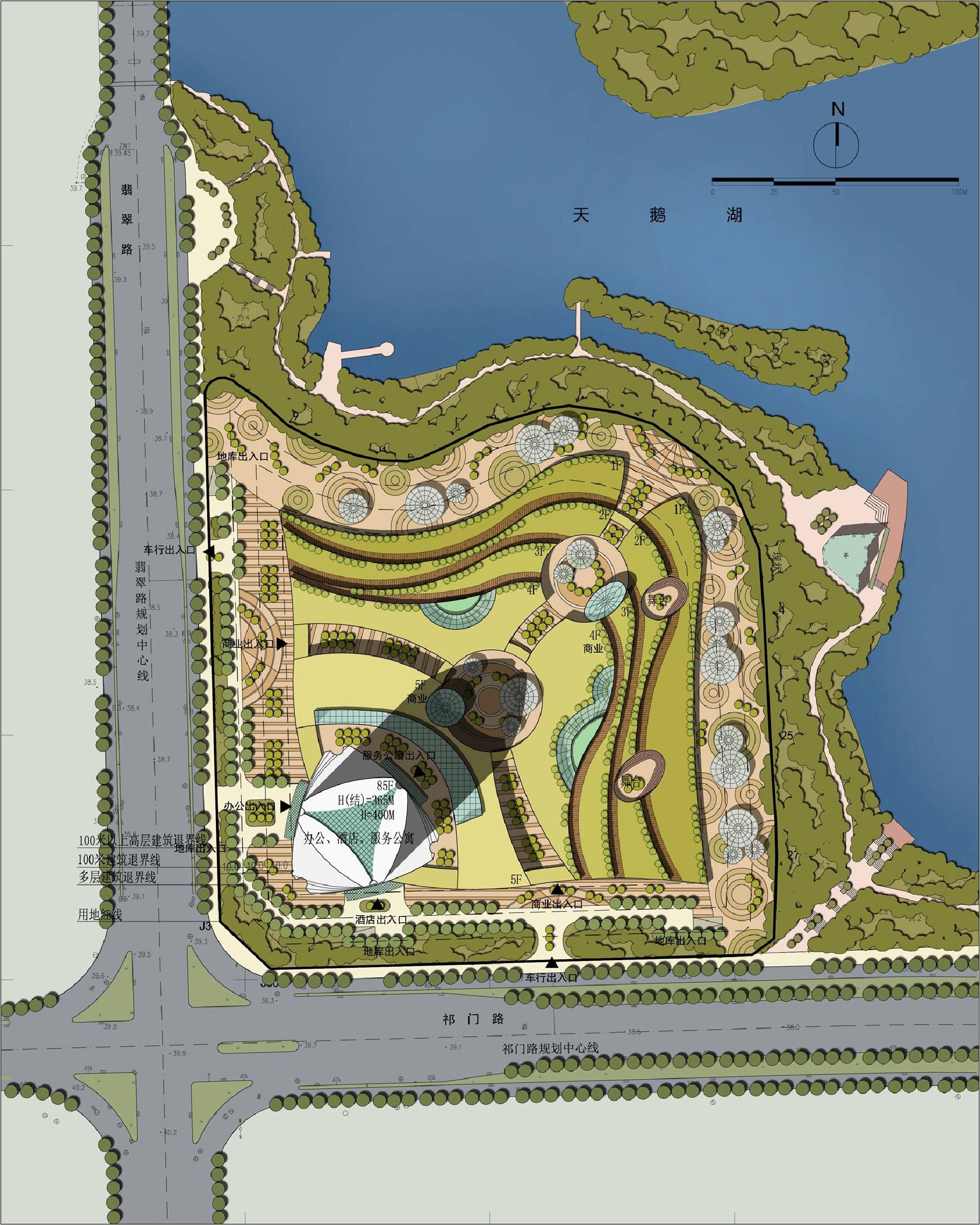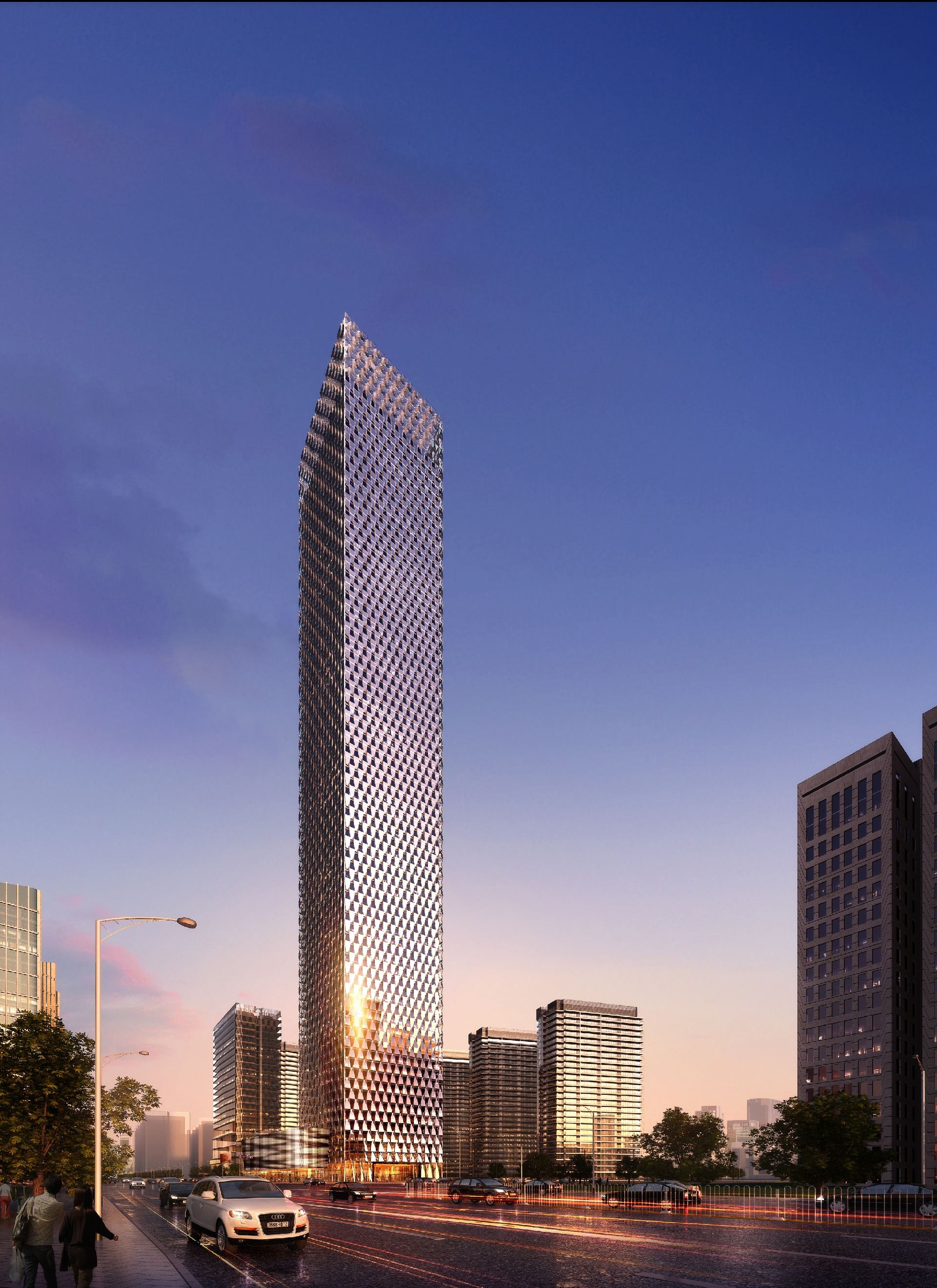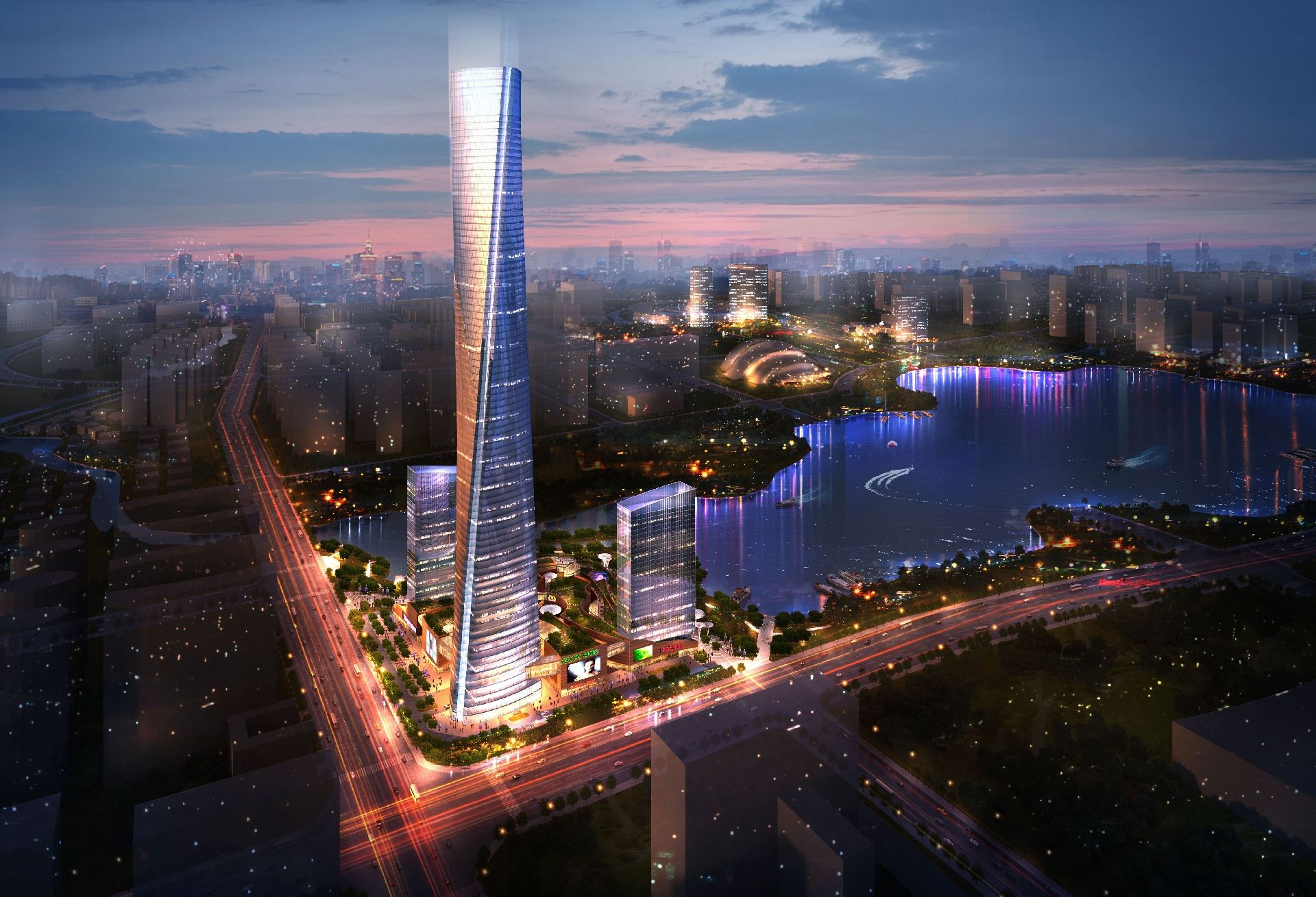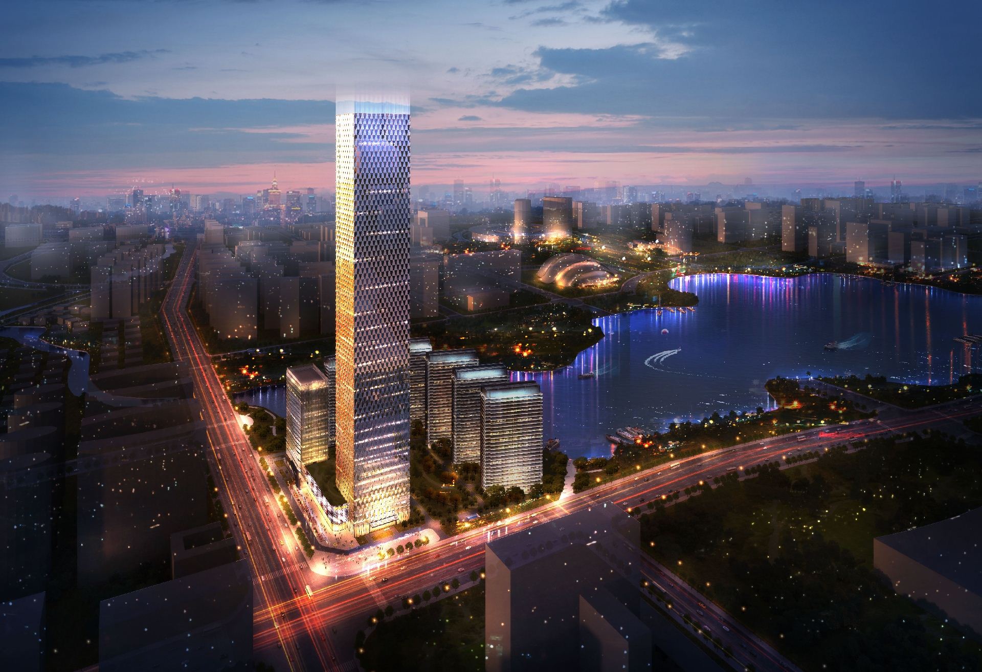 项目位于合肥市蜀山区,地处市政务文化新区核心的天鹅湖边缘,祁门路和翡翠路交叉口东南角。项目结合城市未来规划与发展,与省广电大楼城市天际线呼应,形成良好的城市形象