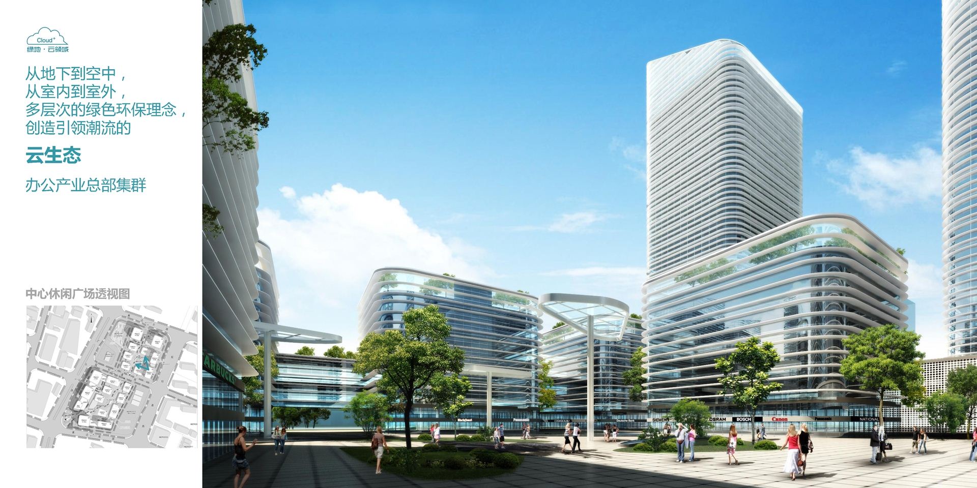 从地下到空中,从室内到室外,多层次的绿色环保理念,创造引领潮流的云生态办公产业总部集群;