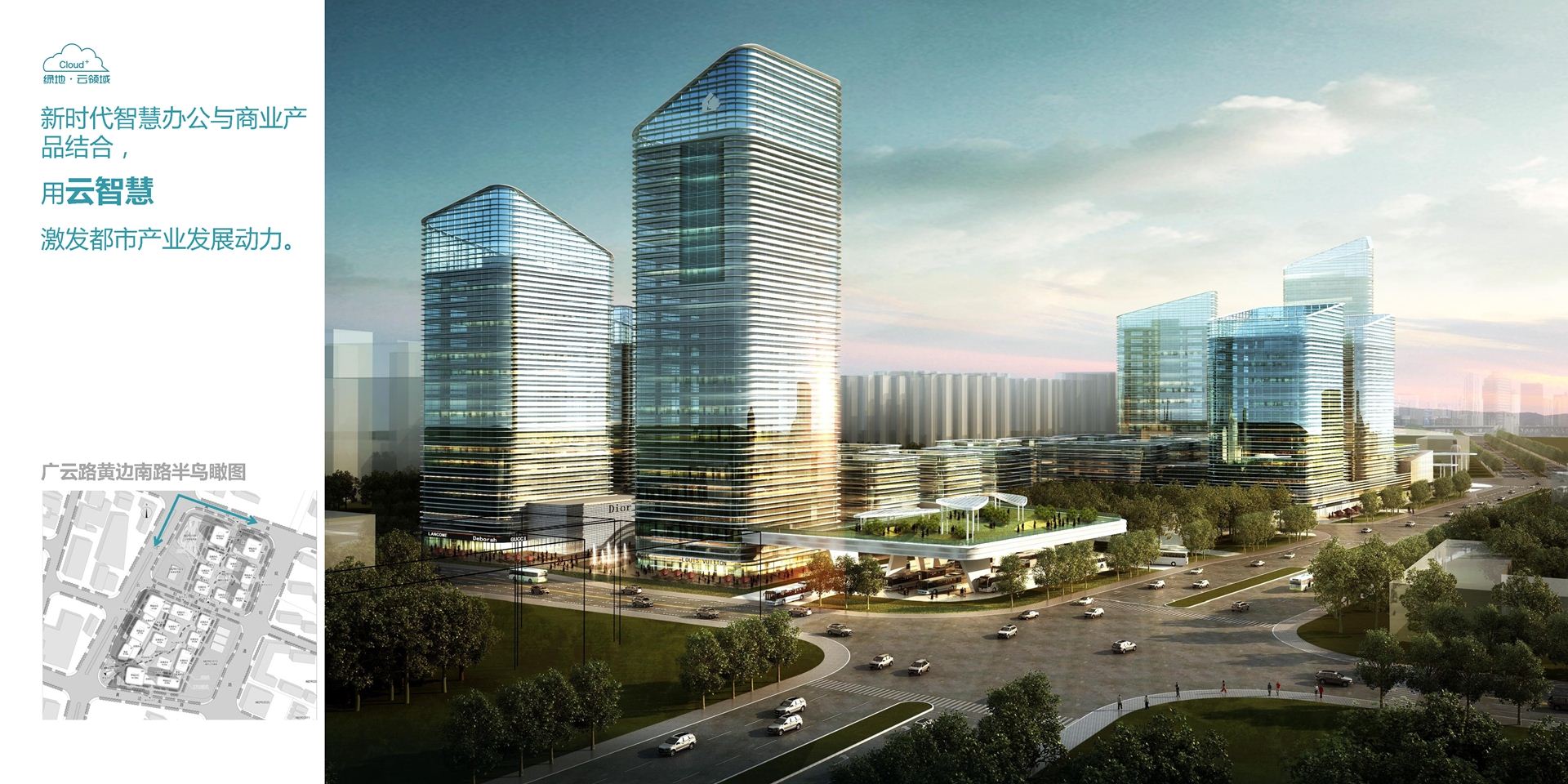 高端商办集群与城市公交换乘中心紧密衔接,创造与城市交通立体连动的云社区;