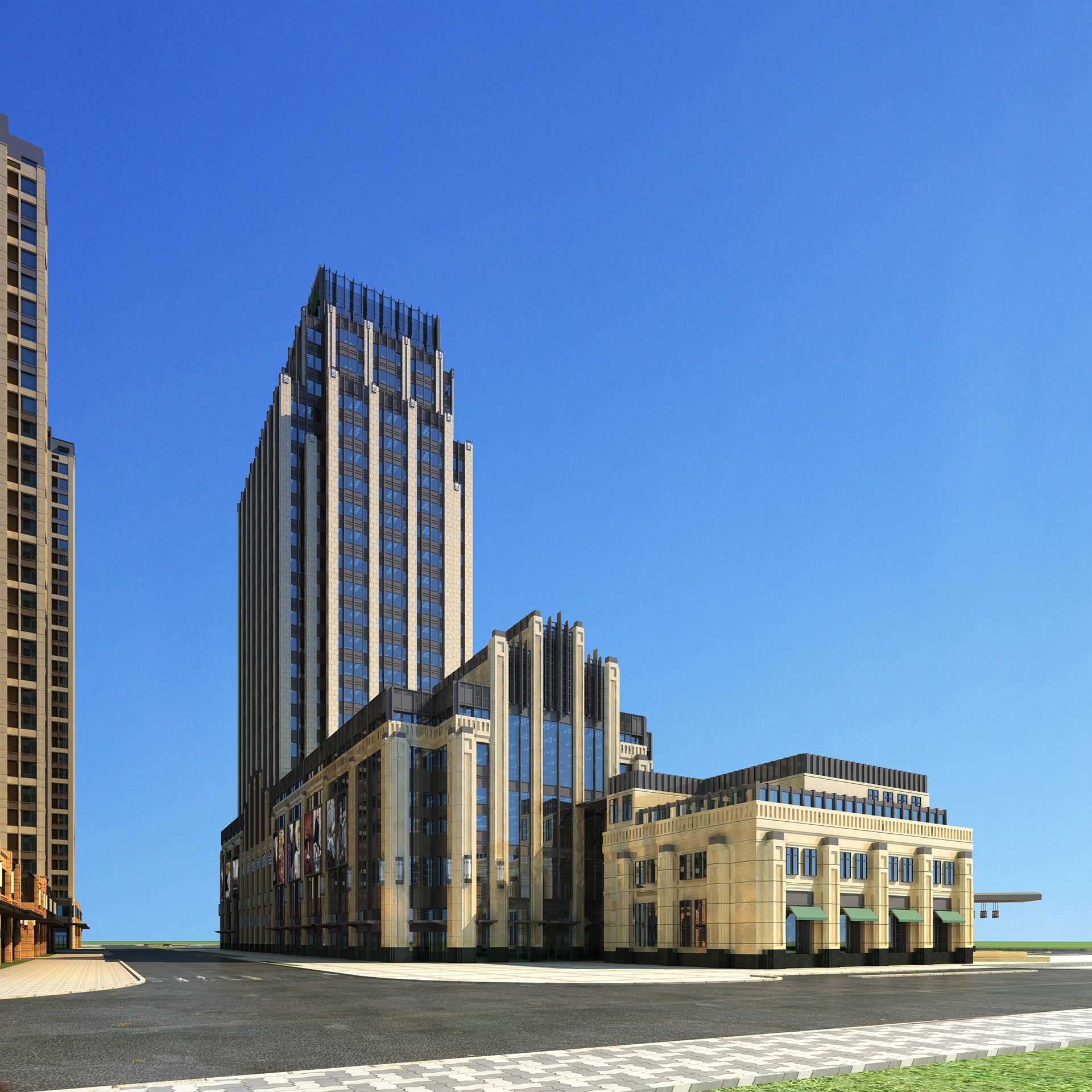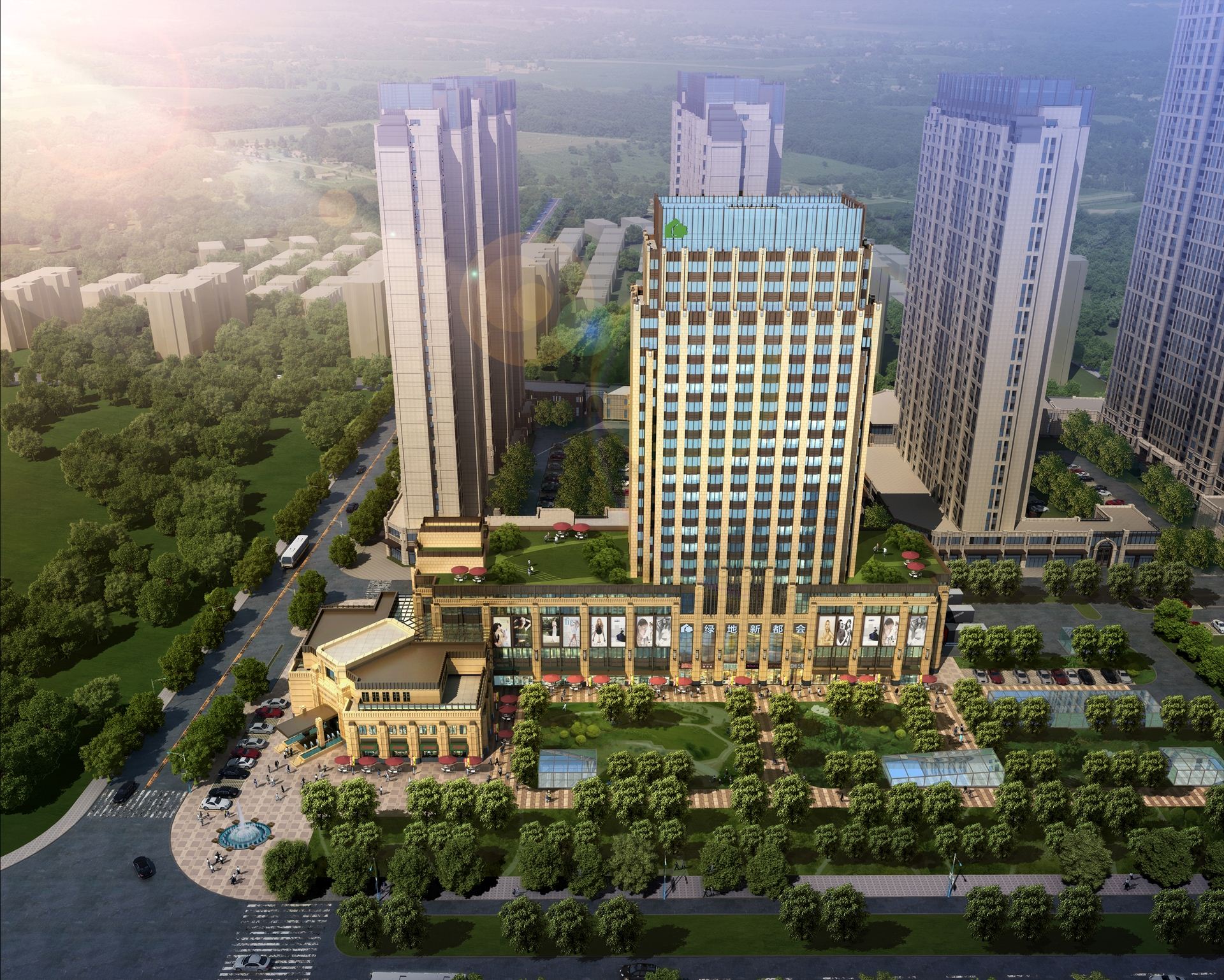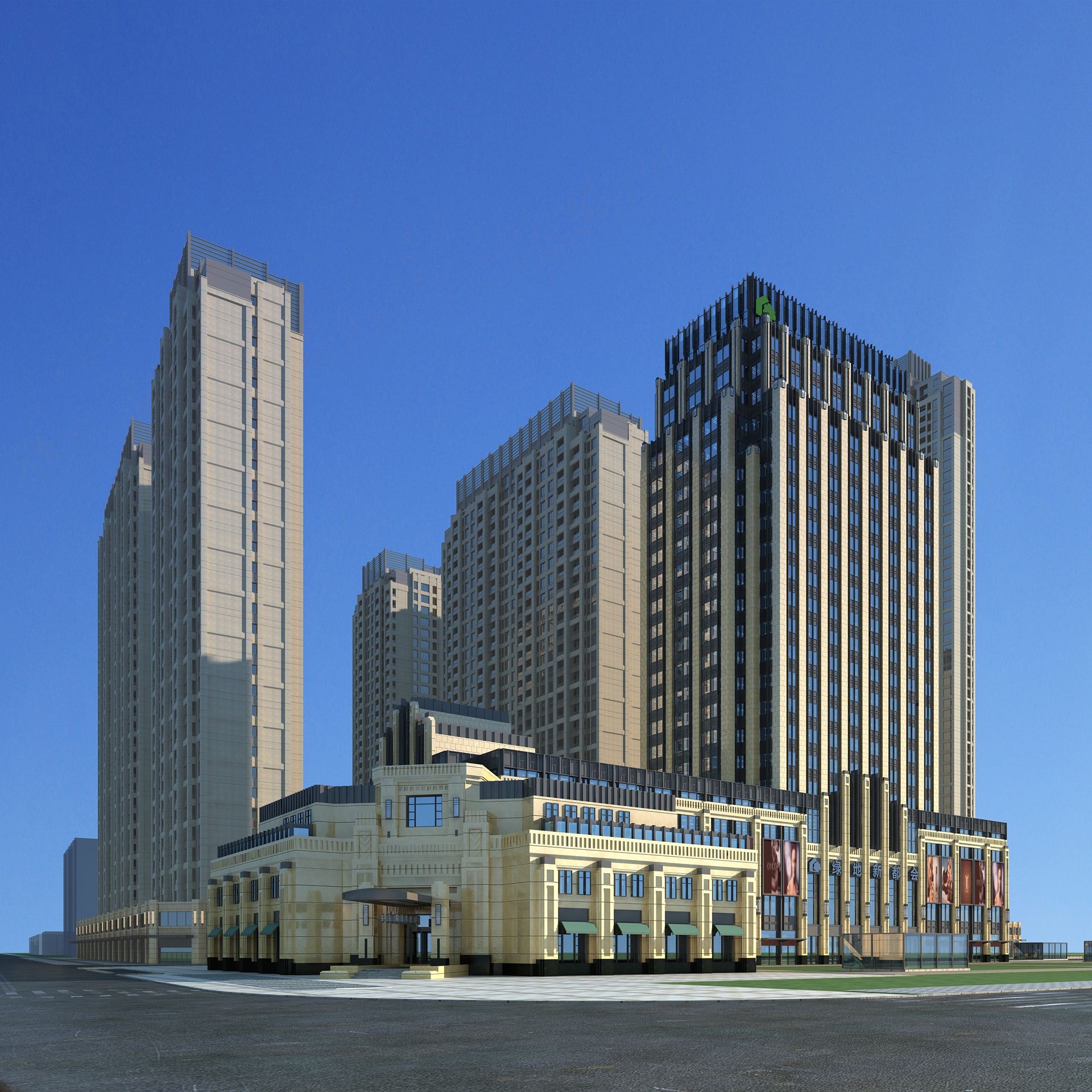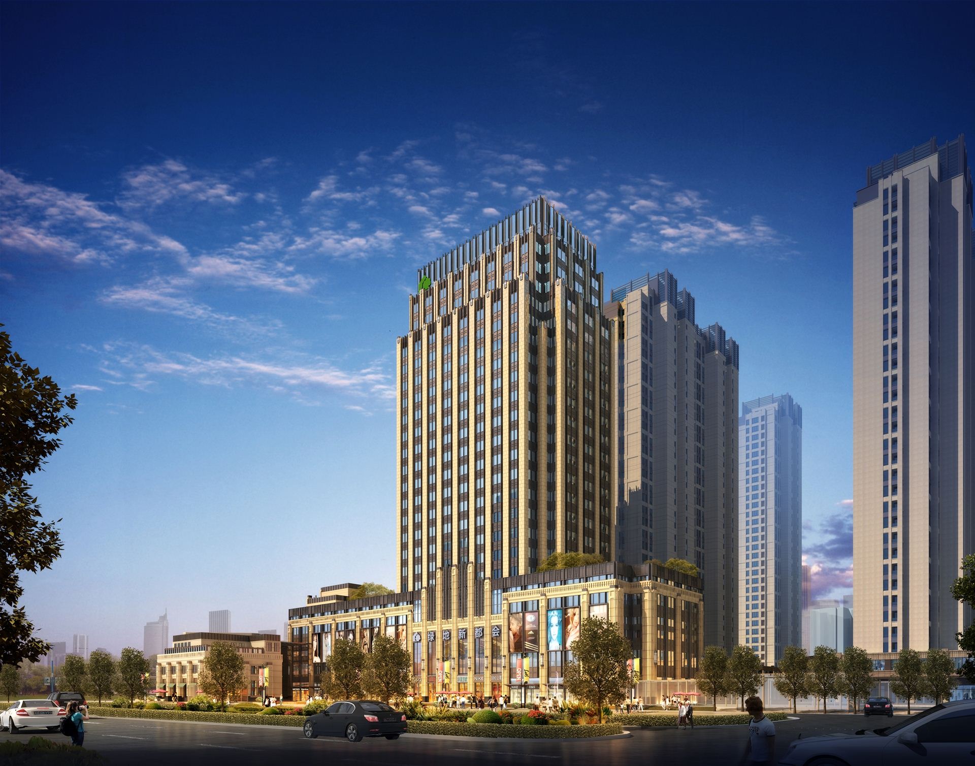 武汉四新新都会项目 对简约古典主义的新诠释 客户:绿地集团用地面积:16323总建筑面积:43957位置:武汉功能:办公+社区配套商业中心项目负责人:郭红旗 董浩项目建筑师:丁一犀 张璐 设计团队:林飞 王彧锦