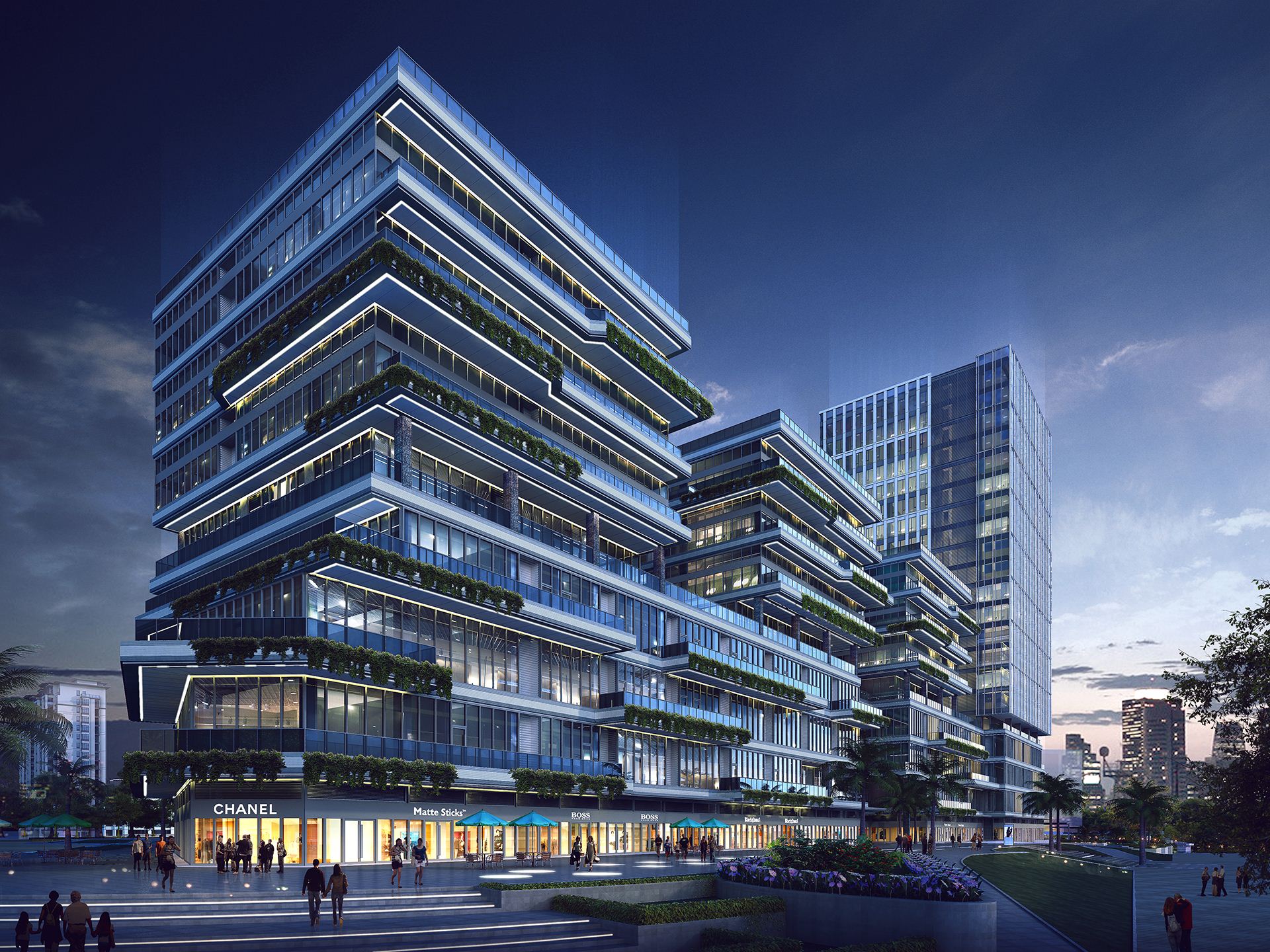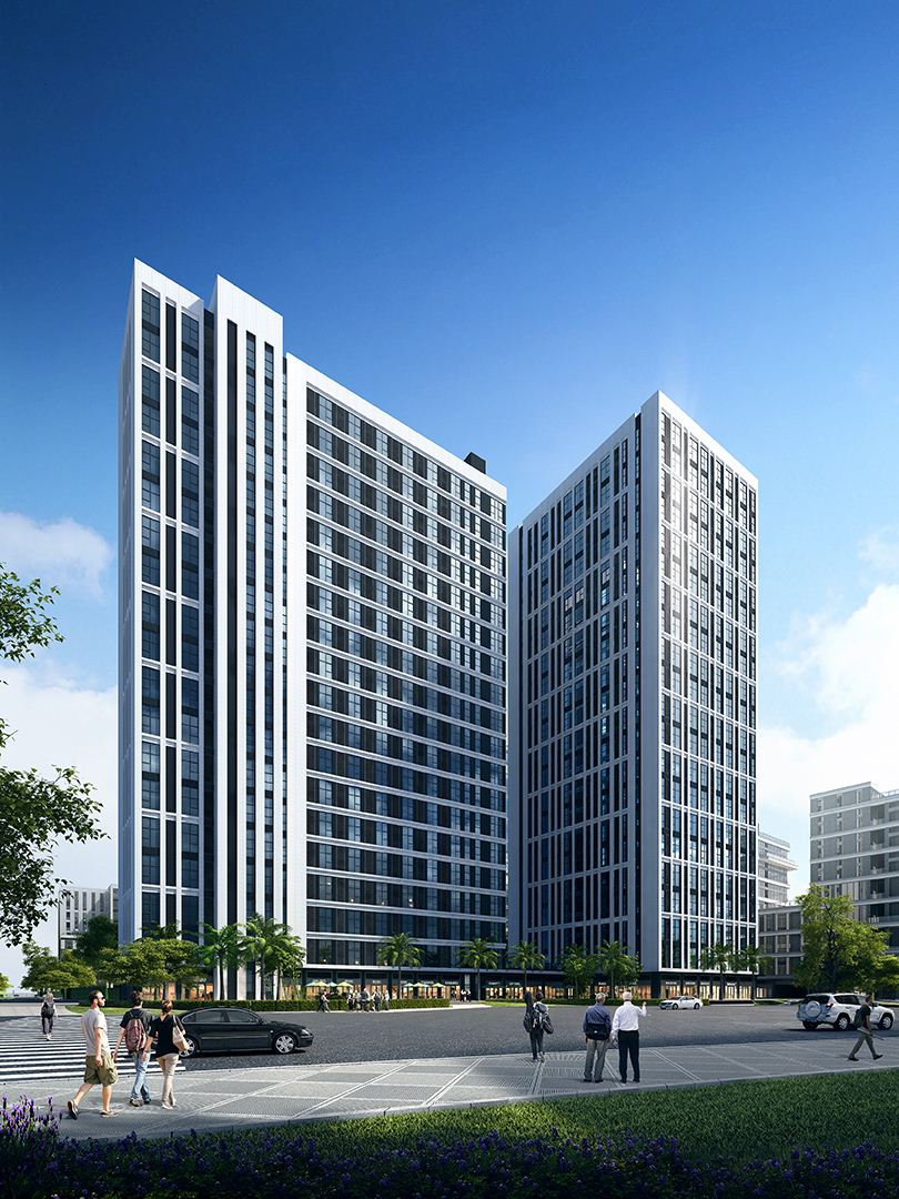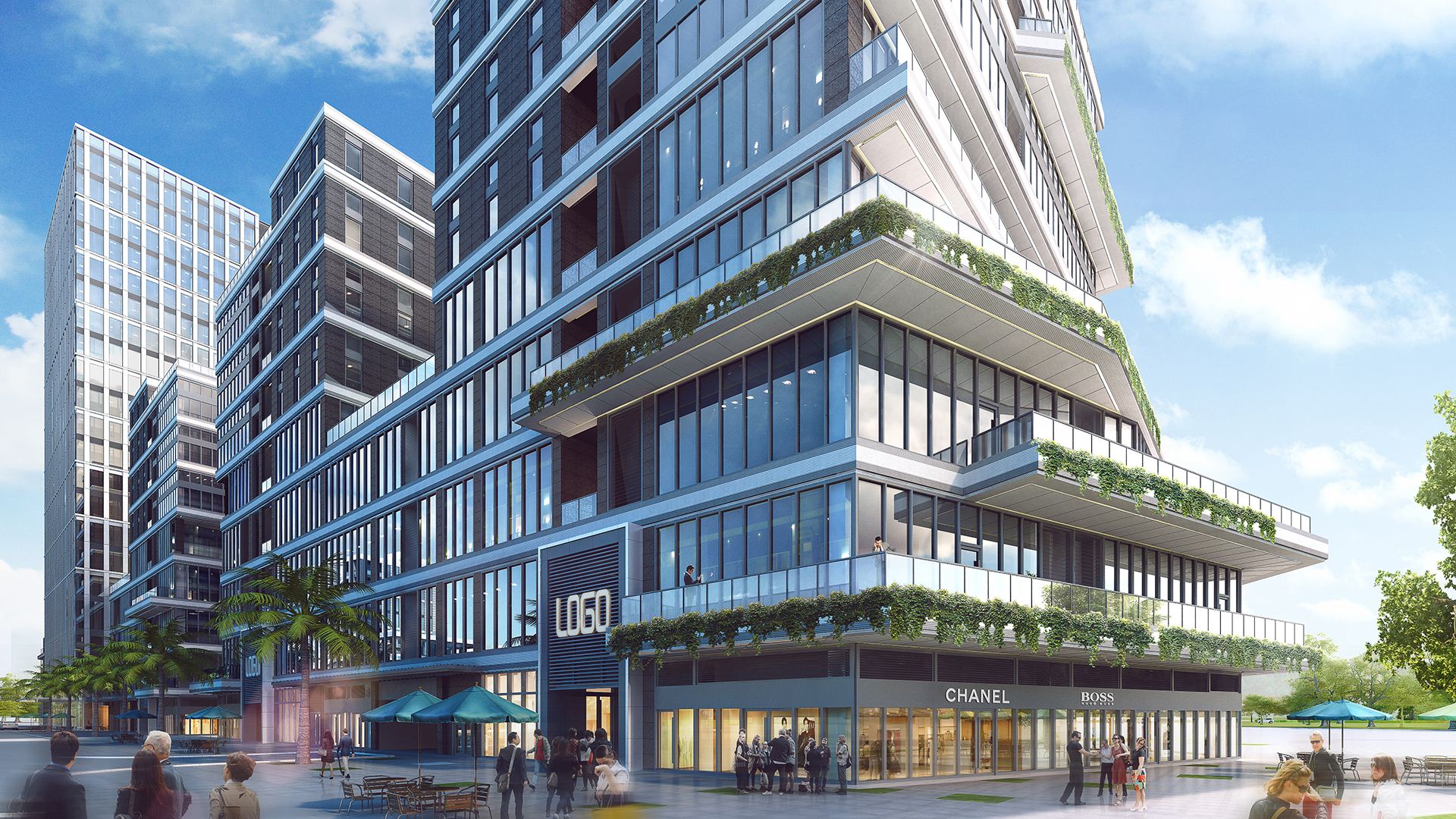 花园办公:基地沿街设置大平层办公平台模式并提出立体式露台花园办公的产品理念,具有灵活划分特点的办公空间组合,适应不同规模的企业需求;空间具有灵活性,适应各类使用要求。每栋企业总部由底层私家花园、入户花园电梯厅、总裁花园、露台花园构成的立体、多层次的绿化景观,实现