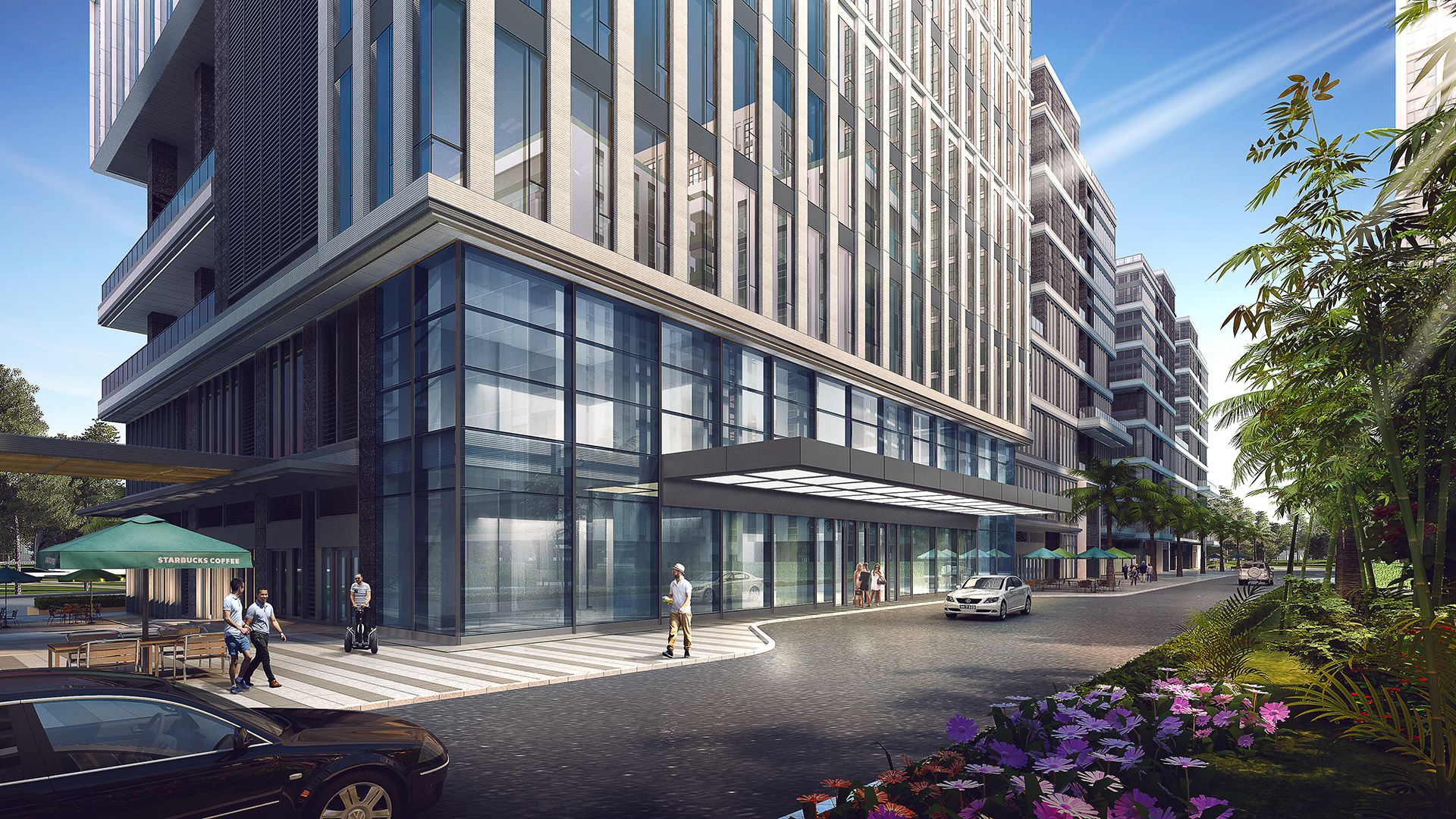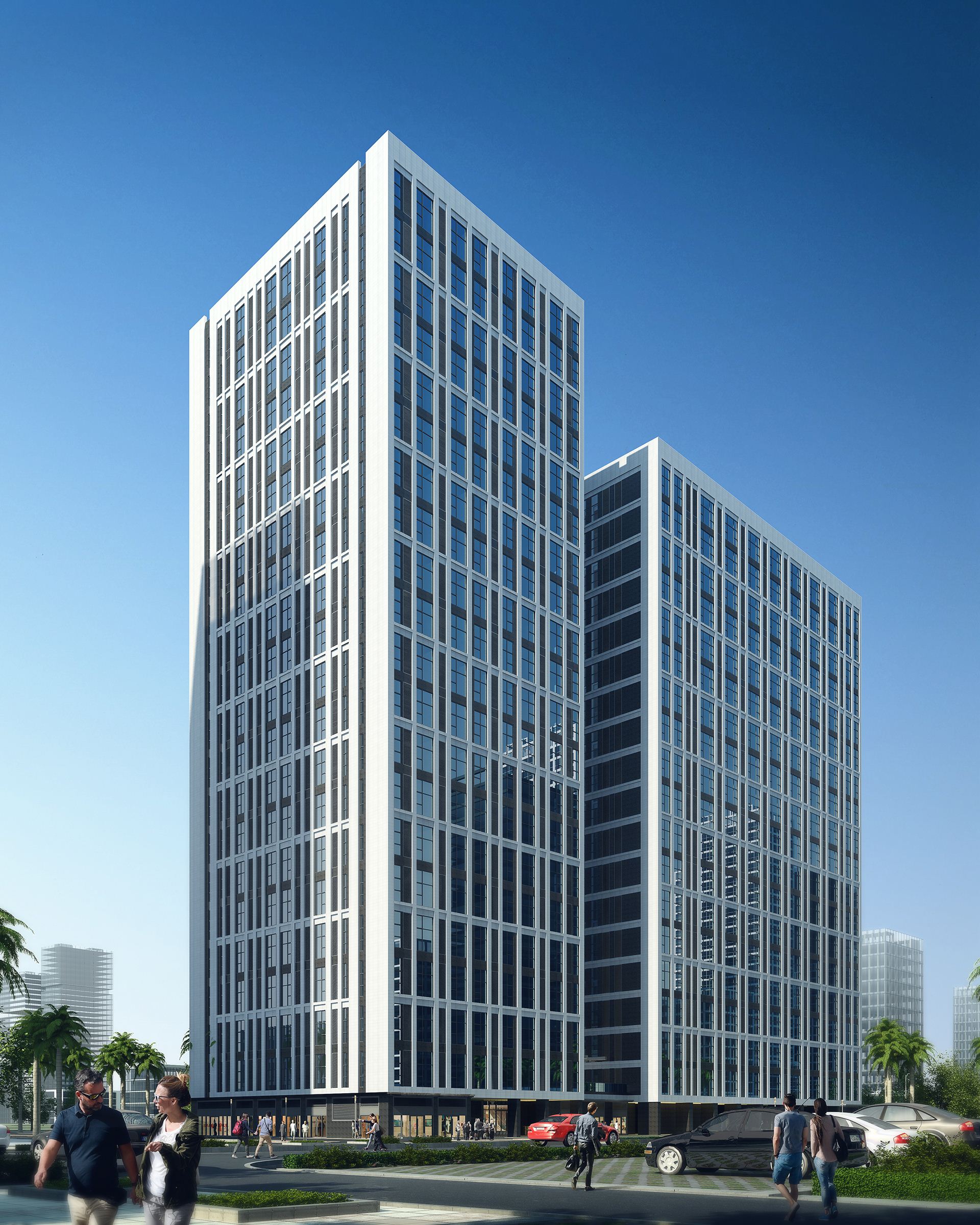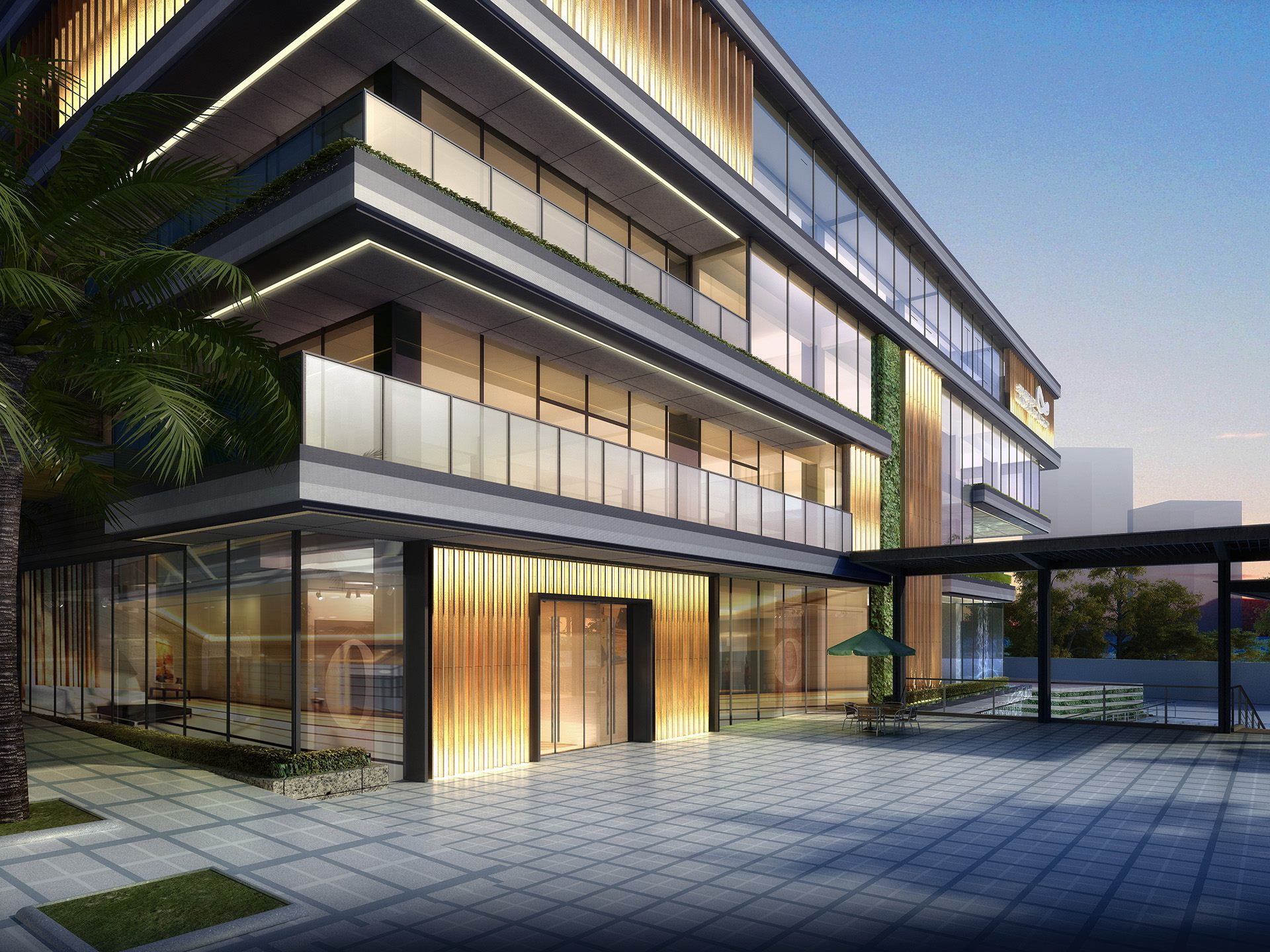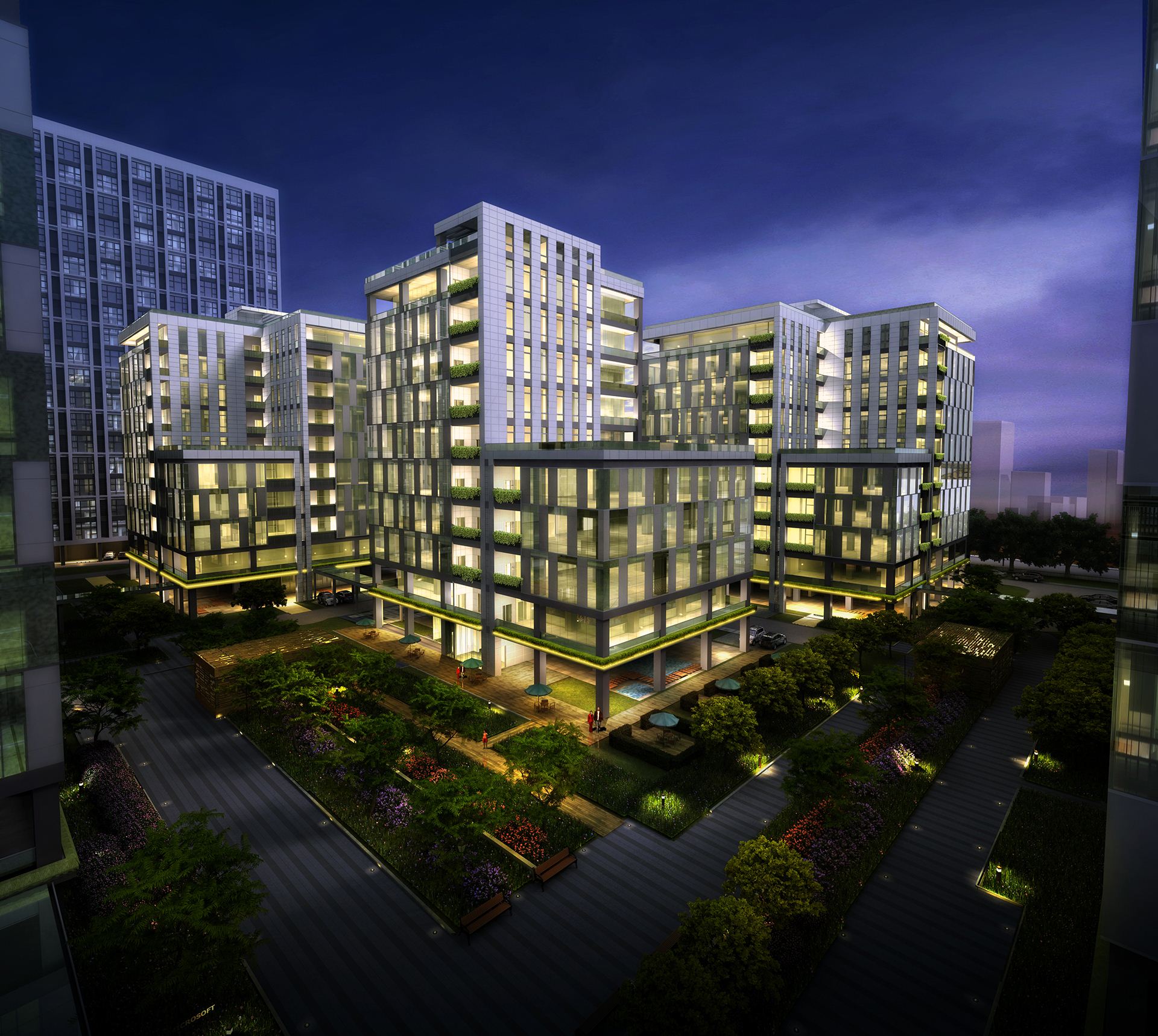 花园办公:基地沿街设置大平层办公平台模式并提出立体式露台花园办公的产品理念,具有灵活划分特点的办公空间组合,适应不同规模的企业需求;空间具有灵活性,适应各类使用要求。每栋企业总部由底层私家花园、入户花园电梯厅、总裁花园、露台花园构成的立体、多层次的绿化景观,实现