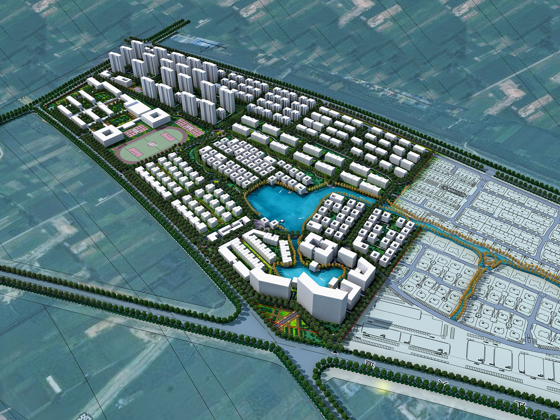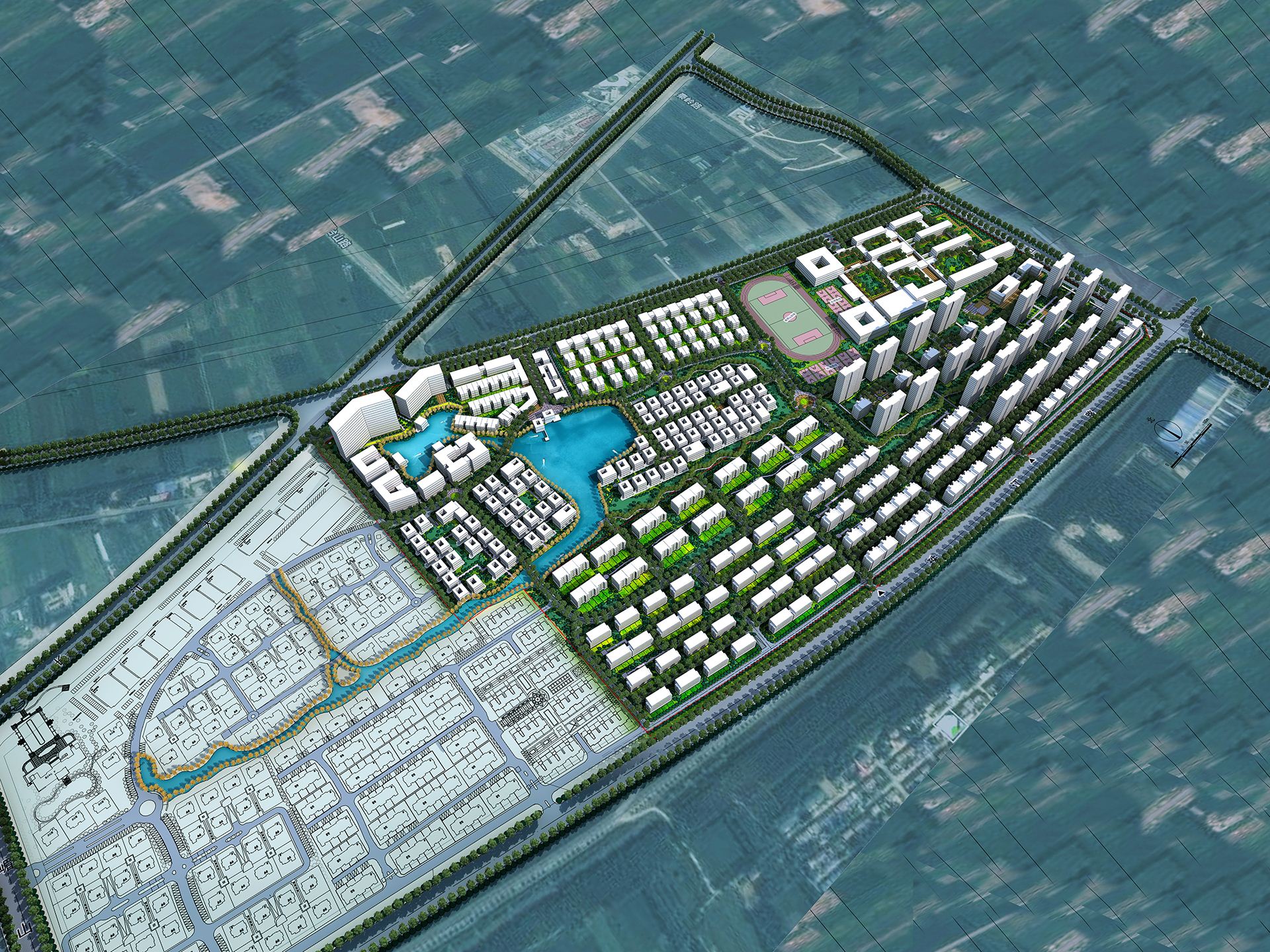 【国际生态水岸小镇】:鼓吹国际化大都市的郊区品质生活,强化景观系统的价值创造,营造标签化的社区环境特征,多样性功能的混搭集群