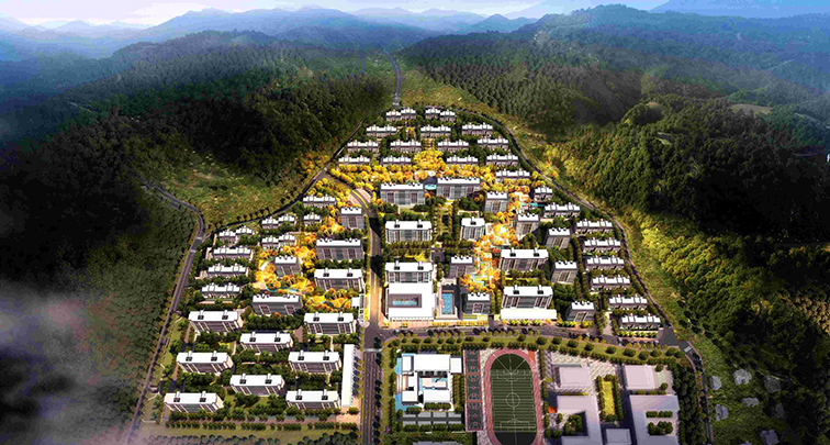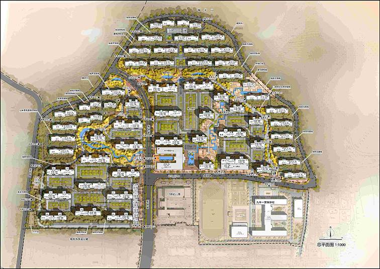 布局策略:遵循一街、一堂、一谷、三道的规划结构