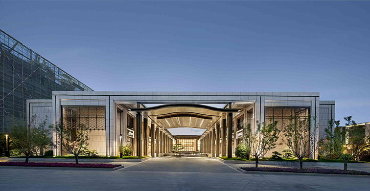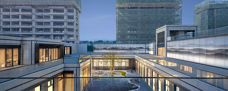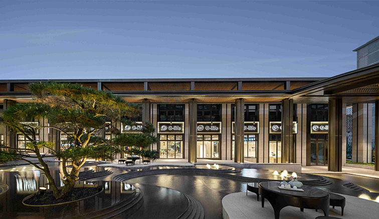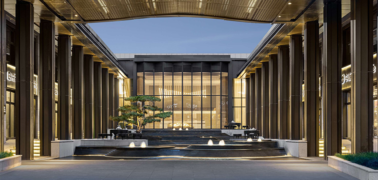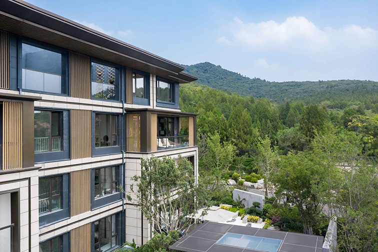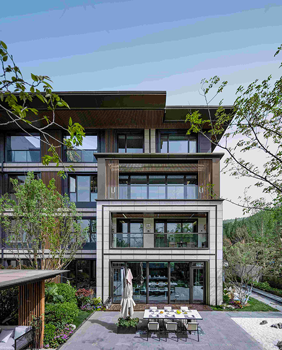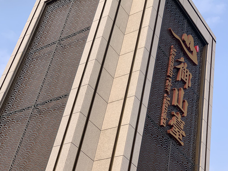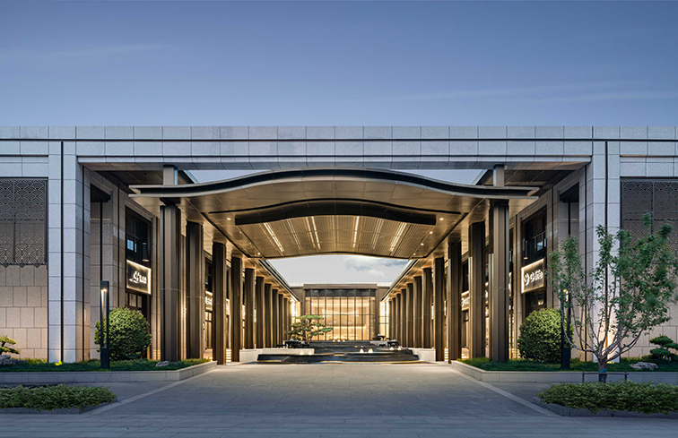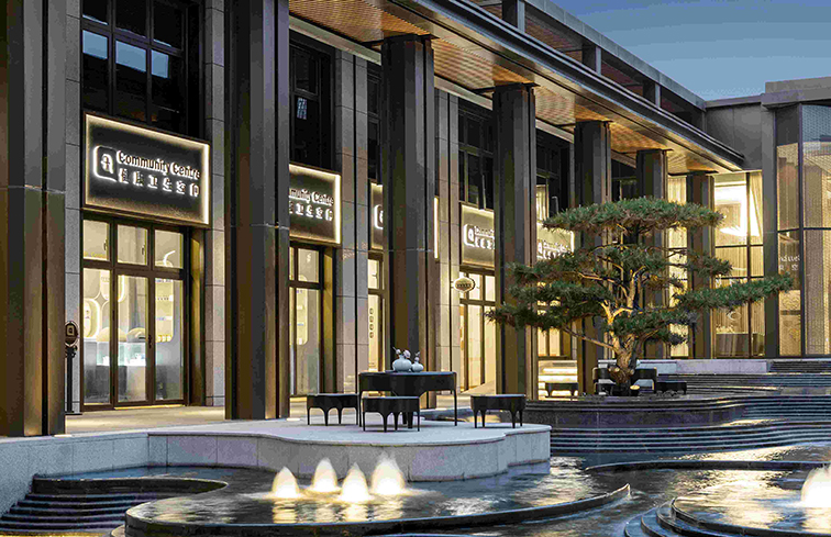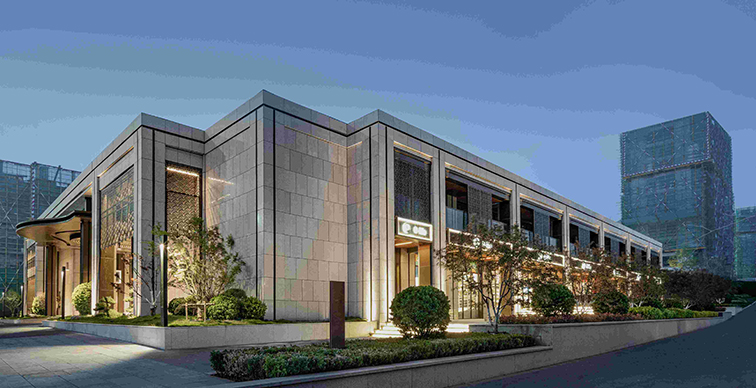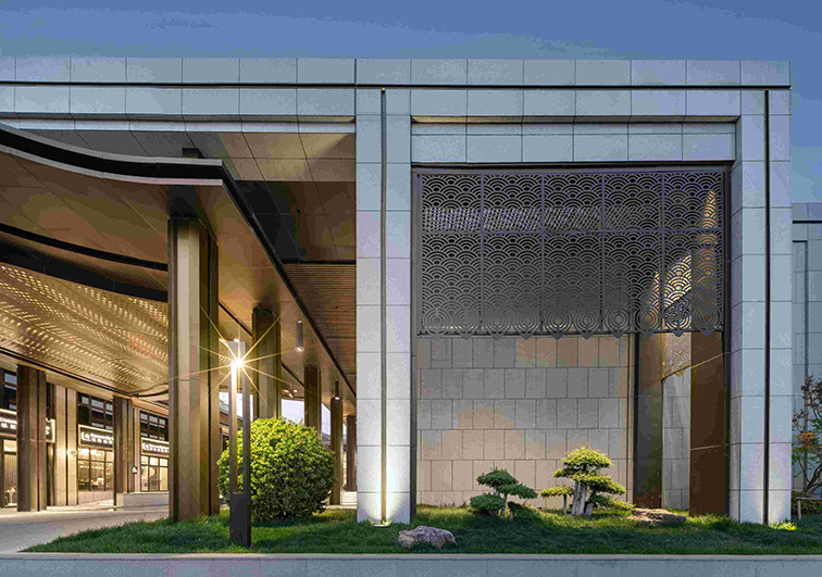 立面设计:在造价可控的前提下,塑造出符合地域气质和新中产品位需求的“正”气里面,并带来大宅的传统美好寓意;在石材格网的立面逻辑框架内,添加“水纹章”金属装饰板,呼应泉城“水”文化,并带来大宅的传统美好寓意