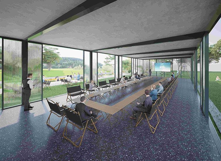 通过家具模块化组合使服务大厅兼具咖啡厅、展厅、会议室、共享办公等多功能灵活功能;